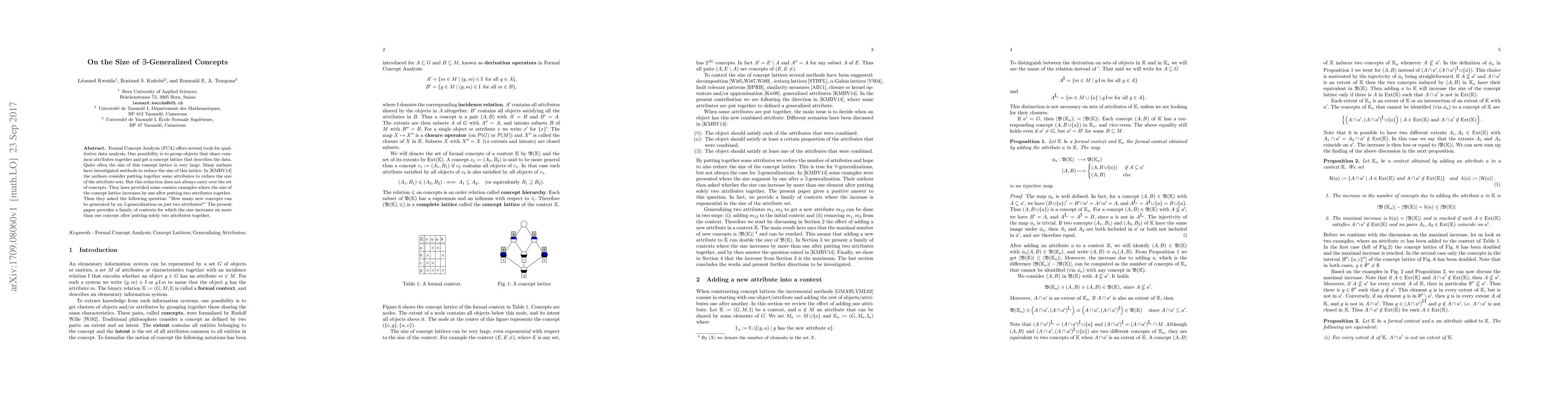 Formal Concept Analysis (FCA) offers several tools for qualitative data analysis. One possibility is to group objects that share common attributes together and get a concept lattice that describes the data. Quite often the size of this concept lattice is very large. Many authors have investigated methods to reduce the size of this lattice. In \cite{KMBV14} the authors consider putting together some attributes to reduce the size of the attribute sets. But this reduction does not always carry over the set of concepts. They have provided some counter examples where the size of the concept lattice increases by one after putting two attributes together. Then they asked the following question: "How many new concepts can be generated by an $\exists$-generalization on just two attributes?" The present paper provides a family of contexts for which the size increases on more than one concept after putting solely two attributes together.