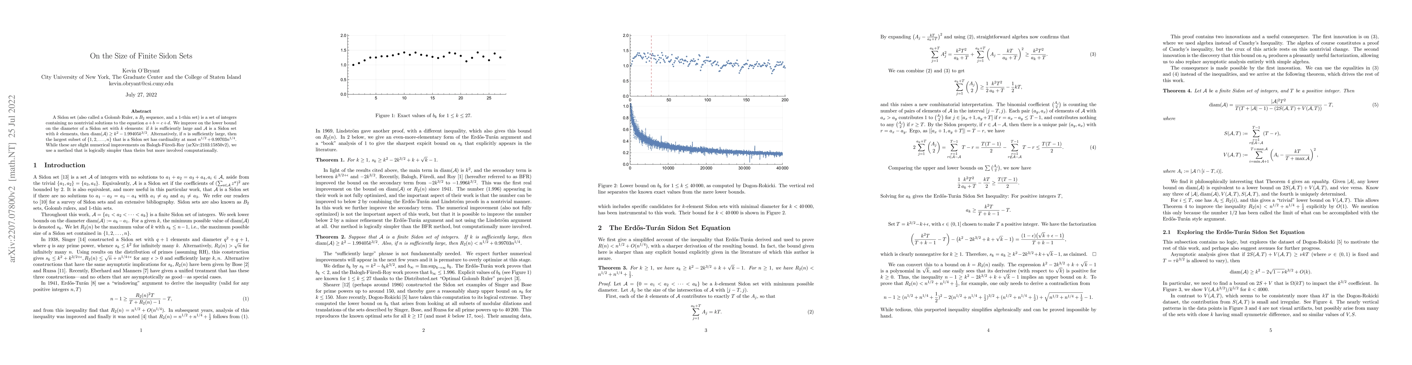 A Sidon set is a set of integers containing no nontrivial solutions to the equation $a+b=c+d$. We improve on the lower bound on the diameter of a Sidon set with $k$ elements: if $k$ is sufficiently large and ${\cal A}$ is a Sidon set with $k$ elements, then $diam({\cal A})\ge k^2-1.99405 k^{3/2}$. Alternatively, if $n$ is sufficiently large, then the largest subset of $\{1,2,\dots,n\}$ that is a Sidon set has cardinality at most $n^{1/2}+0.99703 n^{1/4}$. While these are only slight numerical improvements on Balogh-F\"uredi-Roy (arXiv:2103:15850v2), we use a method that is logically simpler.