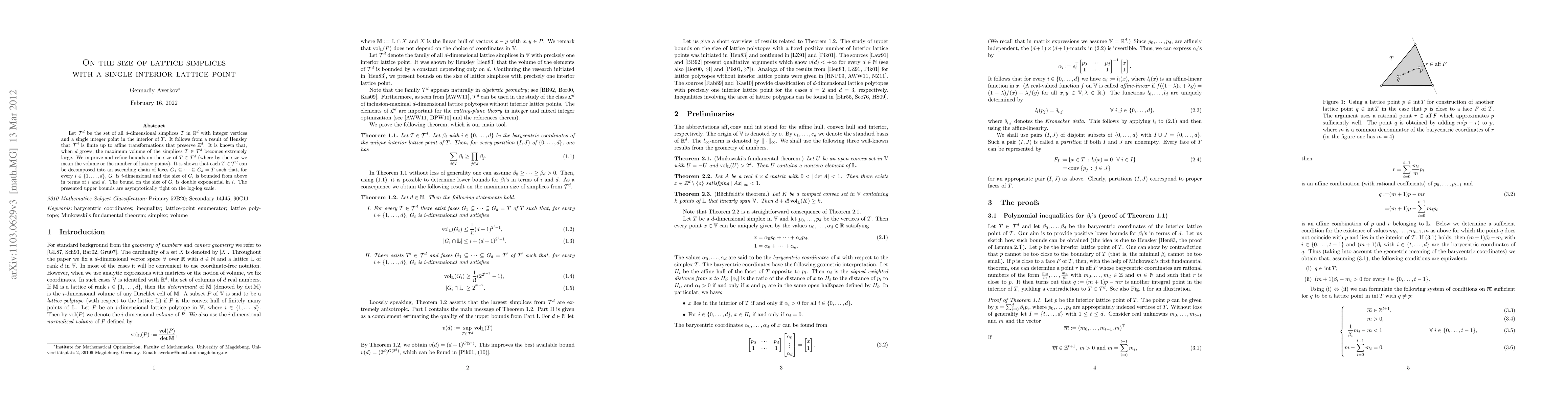 This paper refines bounds on the size of $d$-dimensional simplices with integer vertices and a single interior lattice point, showing that such simplices can be decomposed into smaller faces with sizes bounded by a double exponential function of their dimension. The bounds are shown to be asymptotically tight on a log-log scale.