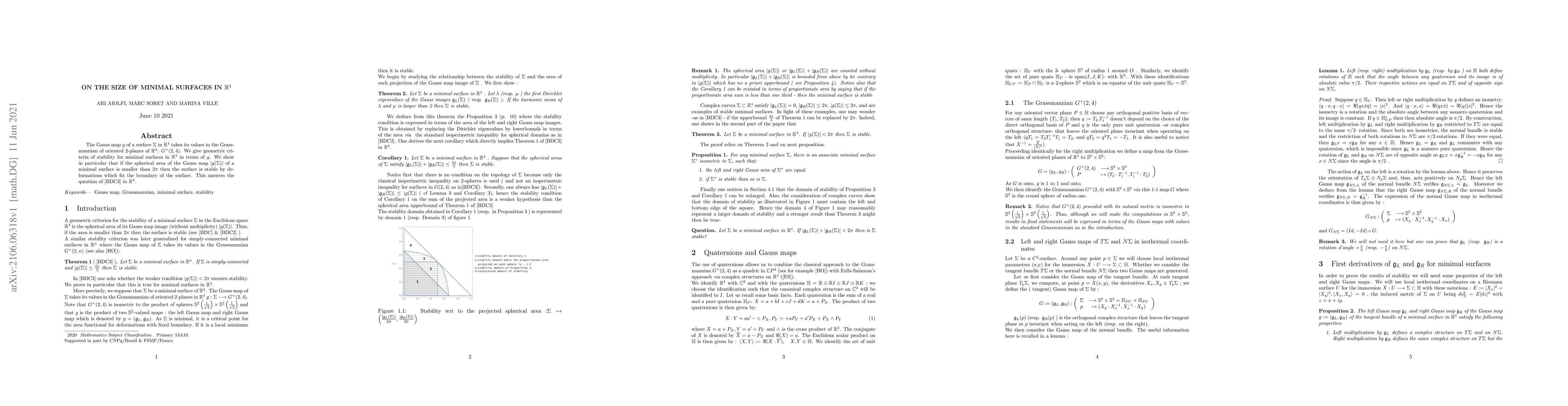 The paper introduces geometric criteria for stability based on the Gauss map's properties, extending the stability analysis from $\mathbb{R}^3$ to $\mathbb{R}^4$ for minimal surfaces.