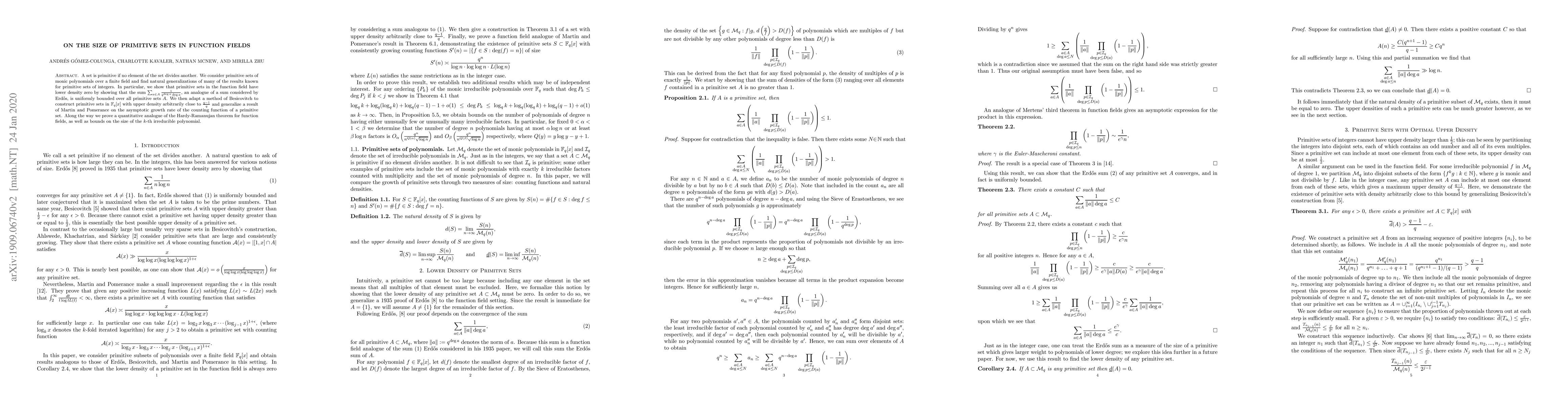 Researchers discovered that there exist primitive sets of monic polynomials over a finite field with upper density close to 1, and found bounds on the size of irreducible polynomials.
