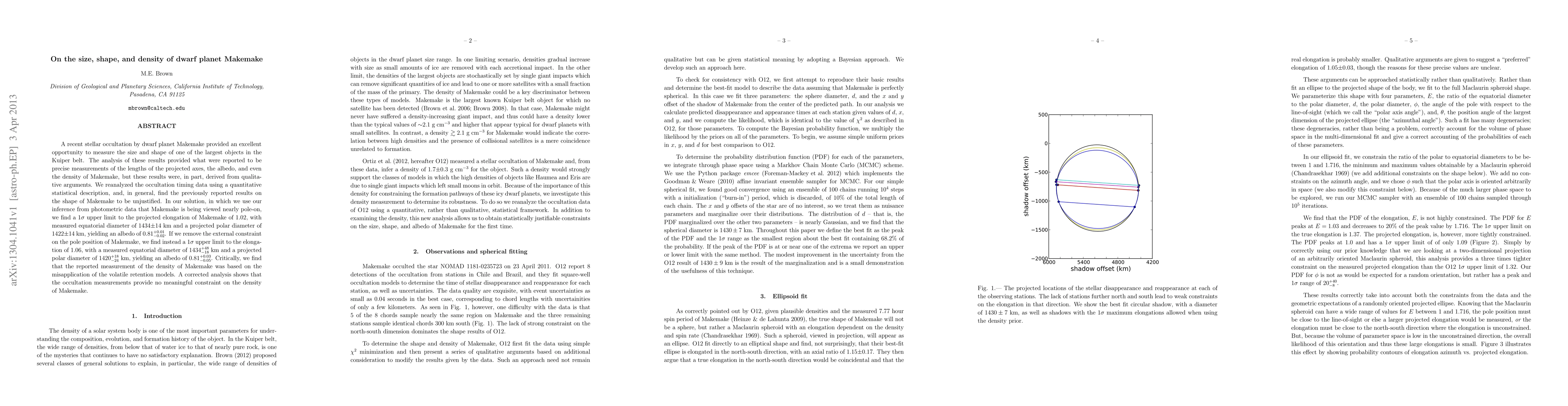 This paper reanalyzes stellar occultation data of dwarf planet Makemake, finding that previous measurements of its shape and density were unjustified. The study suggests Makemake is nearly spherical with an equatorial diameter of 1434 km and a polar diameter of 1422 km, and concludes that the density cannot be meaningfully constrained by the occultation data.