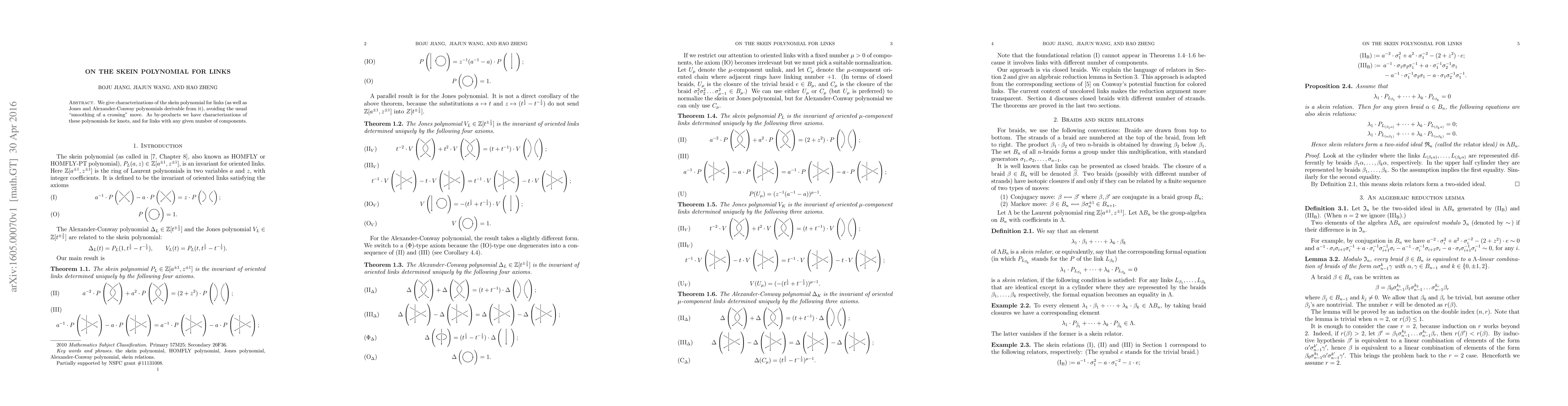 This paper provides new characterizations of skein polynomials for links, knots, and links with multiple components, bypassing traditional smoothing moves, and has implications for knot theory and link invariants.
