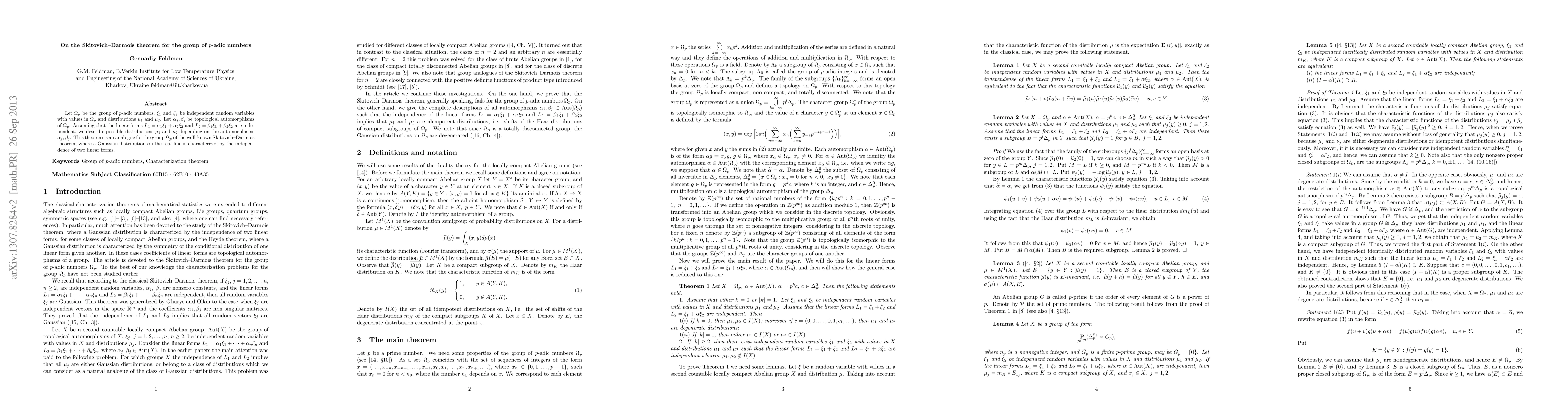 This paper generalizes the Skitovich-Darmois theorem to the group of p-adic numbers, describing possible distributions for independent linear forms with topological automorphisms.