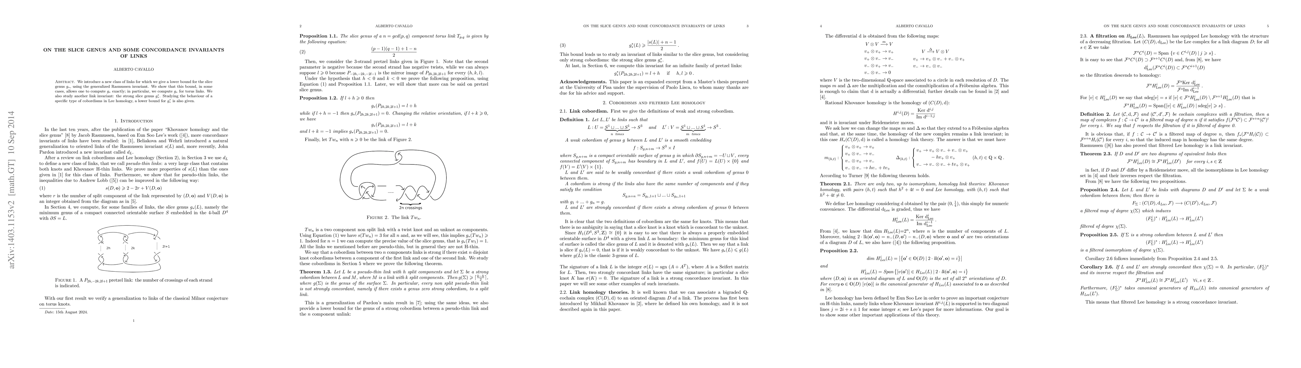 We introduce a new class of links for which we give a lower bound for the slice genus $g_*$, using the generalized Rasmussen invariant. We show that this bound, in some cases, allows one to compute $g_*$ exactly; in particular, we compute $g_*$ for torus links. We also study another link invariant: the strong slice genus $g_*^*$. Studying the behaviour of a specific type of cobordisms in Lee homology, a lower bound for $g_*^*$ is also given.