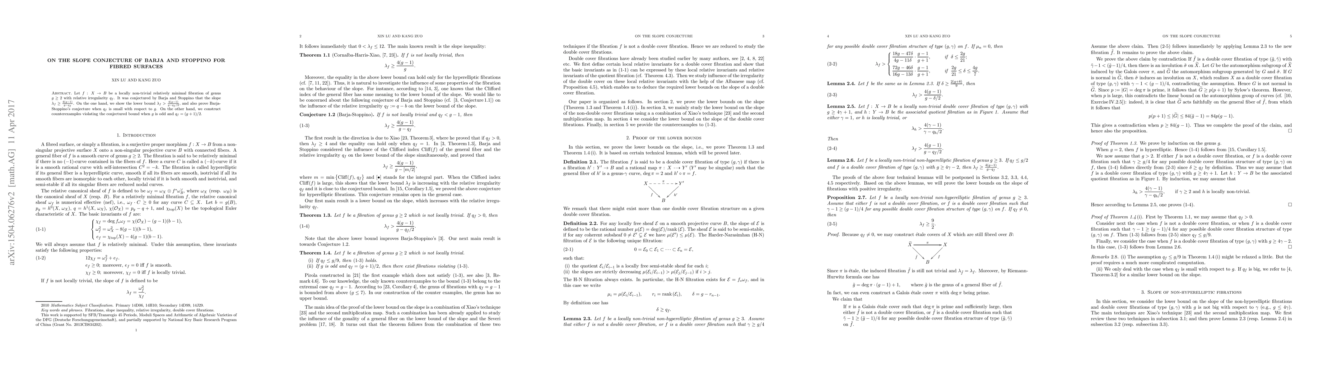 Let $f:\,S \to B$ be a locally non-trivial relatively minimal fibration of genus $g\geq 2$ with relative irregularity $q_f$. It was conjectured by Barja and Stoppino that the slope $\lambda_f\geq \frac{4(g-1)}{g-q_f}$. We prove the conjecture when $q_f$ is small with respect to $g$; we also construct counterexamples when $g$ is odd and $q_f=(g+1)/2$.
