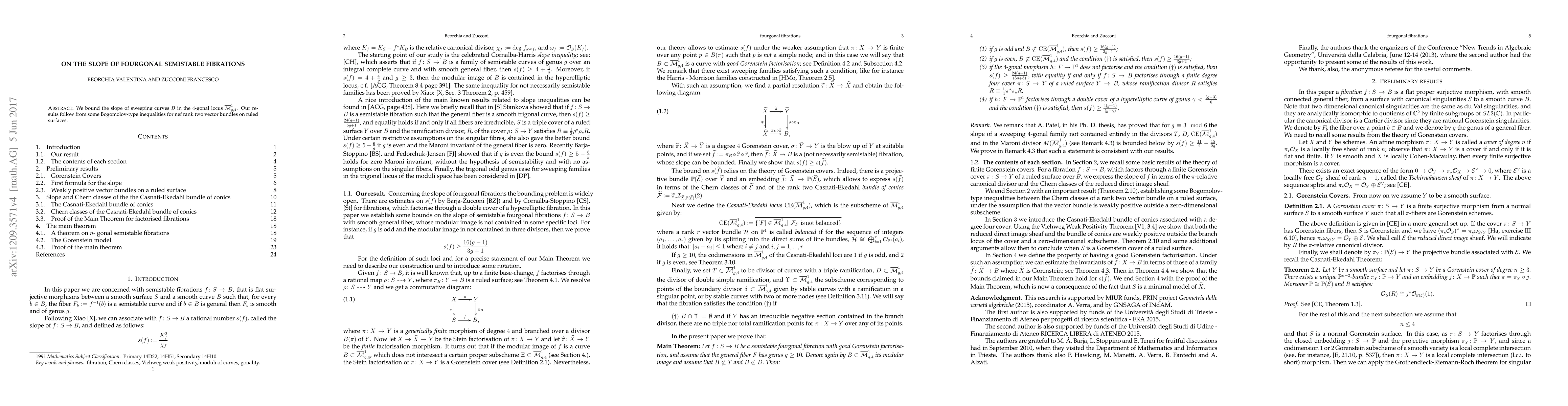 We bound the slope of sweeping curves in the fourgonal locus of the moduli space of genus g algebraic curves. Our results follow from some Bogomolov-type inequalities for weakly positive rank two vector bundles on ruled surfaces.