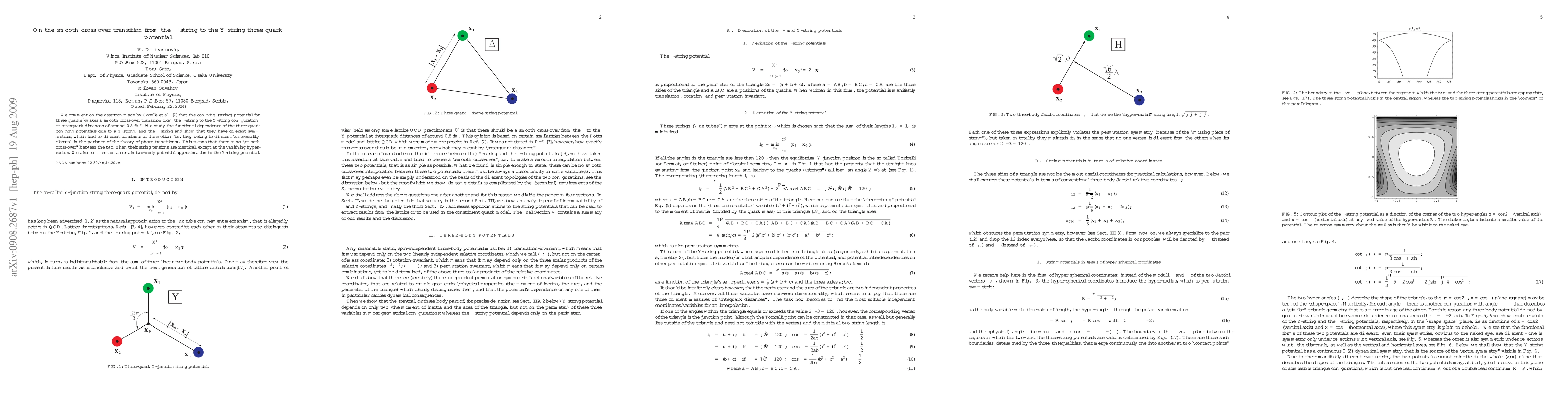 This paper refutes the claim that the three-quark confining potential smoothly transitions from Delta-string to Y-string configurations, demonstrating that the two potentials belong to different "universality classes" due to differing symmetries and constants of motion. It also critiques a two-body potential approximation for the Y-string.