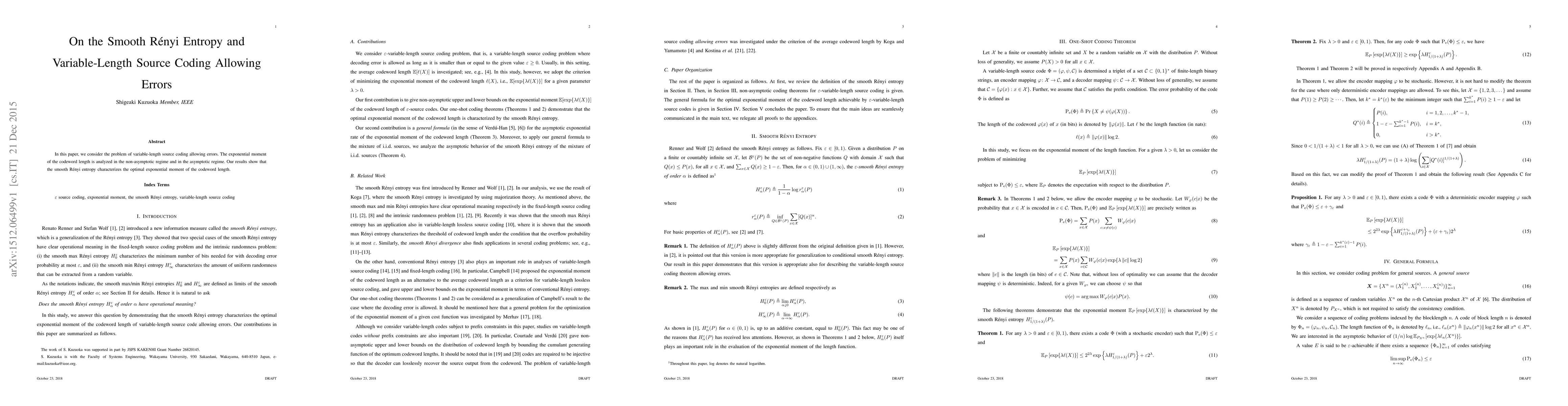 This paper investigates variable-length source coding with errors, demonstrating that the smooth Renyi entropy determines the optimal exponential moment of codeword length in both non-asymptotic and asymptotic regimes.