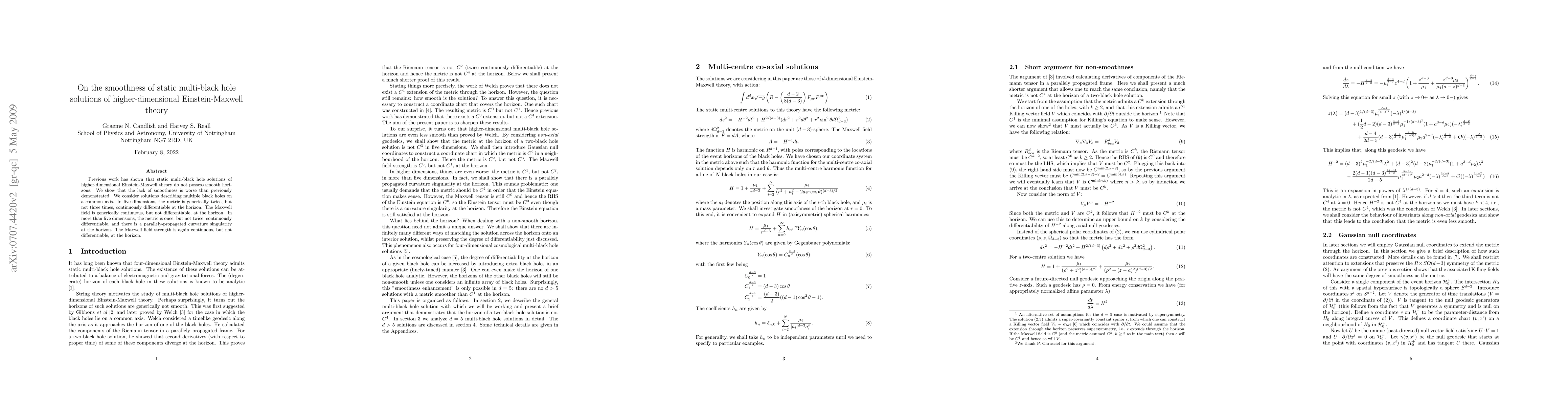 Previous work has shown that static multi-black hole solutions of higher-dimensional Einstein-Maxwell theory do not possess smooth horizons. We show that the lack of smoothness is worse than previously demonstrated. We consider solutions describing multiple black holes on a common axis. In five dimensions, the metric is generically twice, but not three times, continuously differentiable at the horizon. The Maxwell field is generically continuous, but not differentiable, at the horizon. In more than five dimensions, the metric is once, but not twice, continuously differentiable, and there is a parallely-propagated curvature singularity at the horizon. The Maxwell field strength is again continuous, but not differentiable, at the horizon.