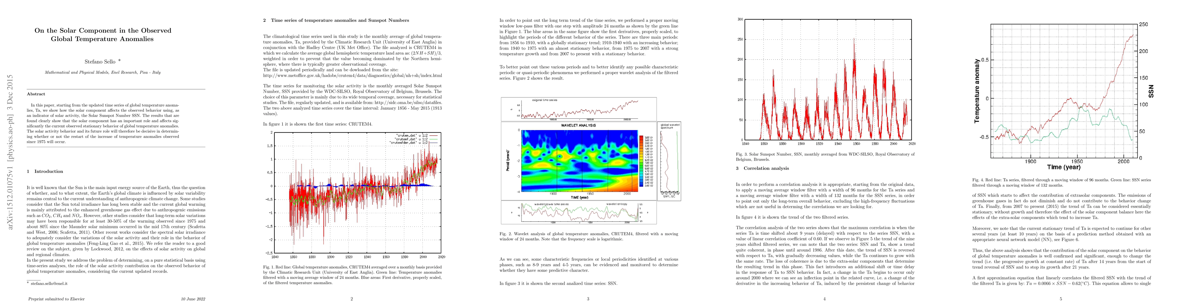 This paper investigates the influence of solar activity, measured by the Solar Sunspot Number, on global temperature anomalies. It concludes that solar components significantly affect current temperature trends and will play a crucial role in determining future temperature anomaly increases.