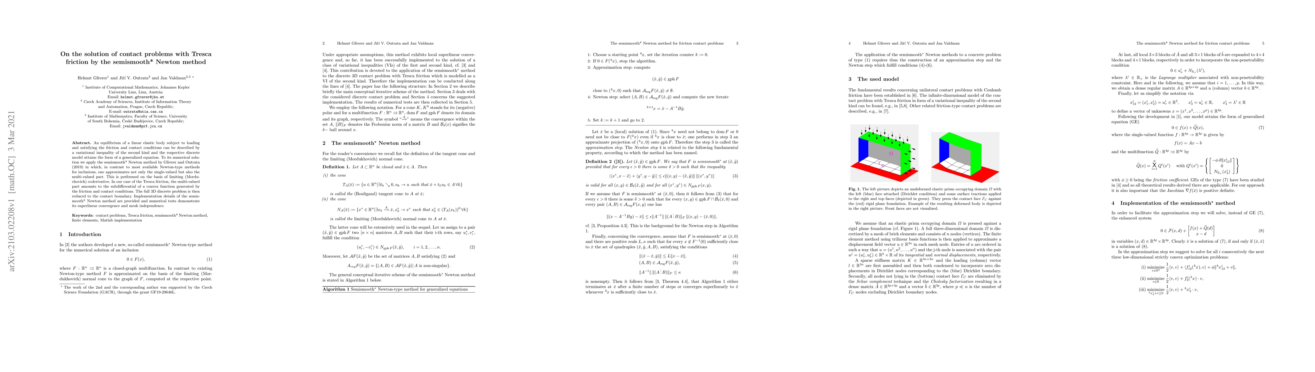 Researchers apply a semismooth Newton method to solve contact problems with Tresca friction, achieving superlinear convergence and mesh independence in 3D discrete models.