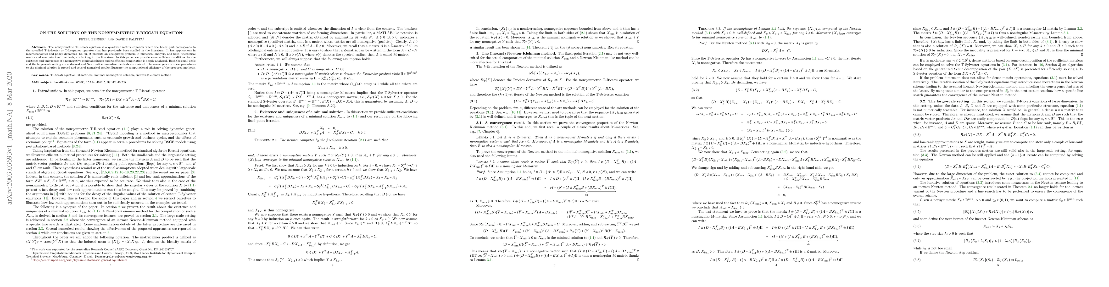 This paper solves the nonsymmetric T-Riccati equation with sufficient conditions for existence and uniqueness of a nonnegative minimal solution, developing efficient computational methods including Newton-Kleinman-like procedures.