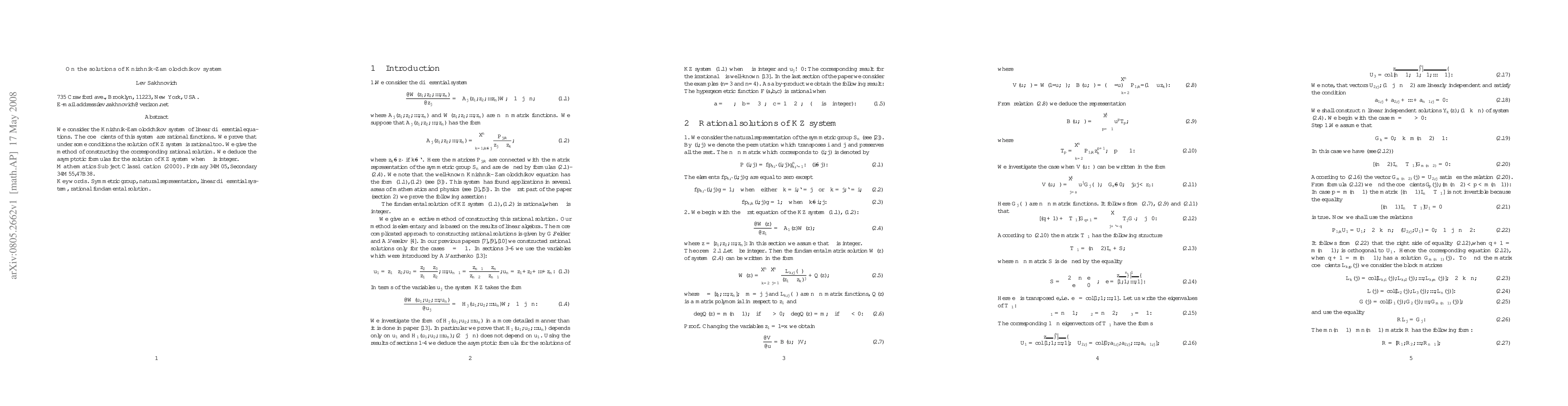 This paper explores the Knizhnik-Zamolodchikov (KZ) system of linear differential equations with rational function coefficients, proving that under certain conditions, the solutions are rational. It also provides a method for constructing these rational solutions and derives asymptotic formulas for the solutions when a specific parameter is an integer.
