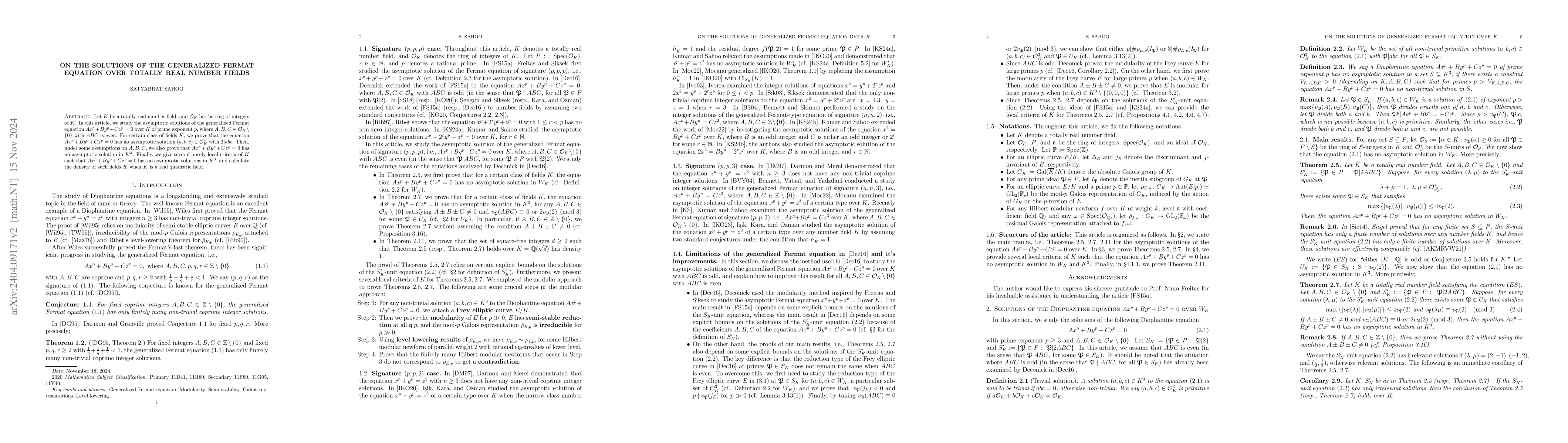 This paper studies the asymptotic solutions of the generalized Fermat equation $Ax^p+By^p+Cz^p=0$ over totally real number fields $K$, proving that for certain classes of fields, this equation has no solutions under specific conditions on coefficients $A, B, C$. It also provides local criteria for the absence of solutions in $K^3$.