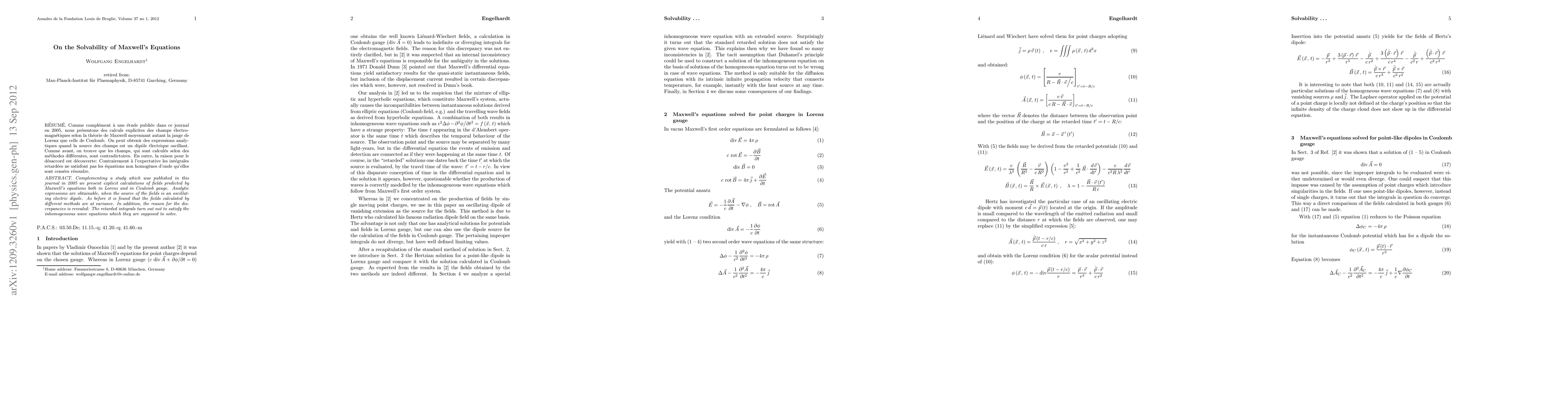 Complementing a study which was published in this journal in 2005, we present explicit calculations of fields predicted by Maxwell's equations both in Lorenz and in Coulomb gauge. Analytic expressions are obtainable, when the source of the fields is an oscillating electric dipole. As before it is found that the fields calculated by different methods are at variance. In addition, the reason for the discrepancies is revealed: The retarded integrals turn out not to satisfy the inhomogeneous wave equations which they are supposed to solve.