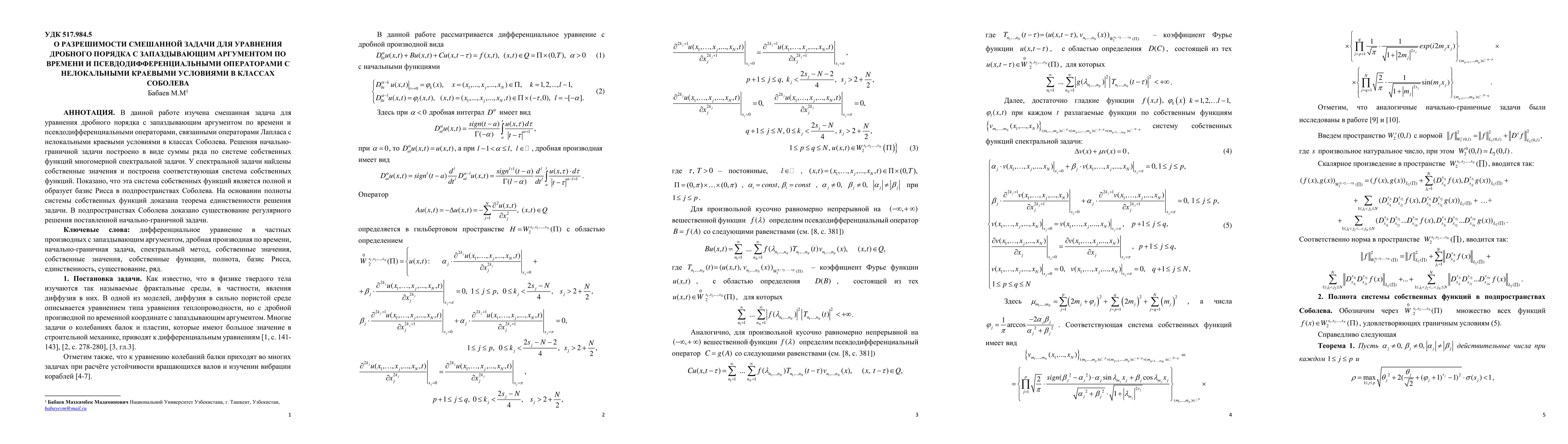 This paper investigates the solvability of a mixed problem for a fractional-order equation with time-delay and pseudodifferential operators, featuring non-local boundary conditions in Sobolev classes. The solution is constructed via a series of eigenfunctions, proving the system's completeness and establishing a uniqueness and existence theorem for the problem.