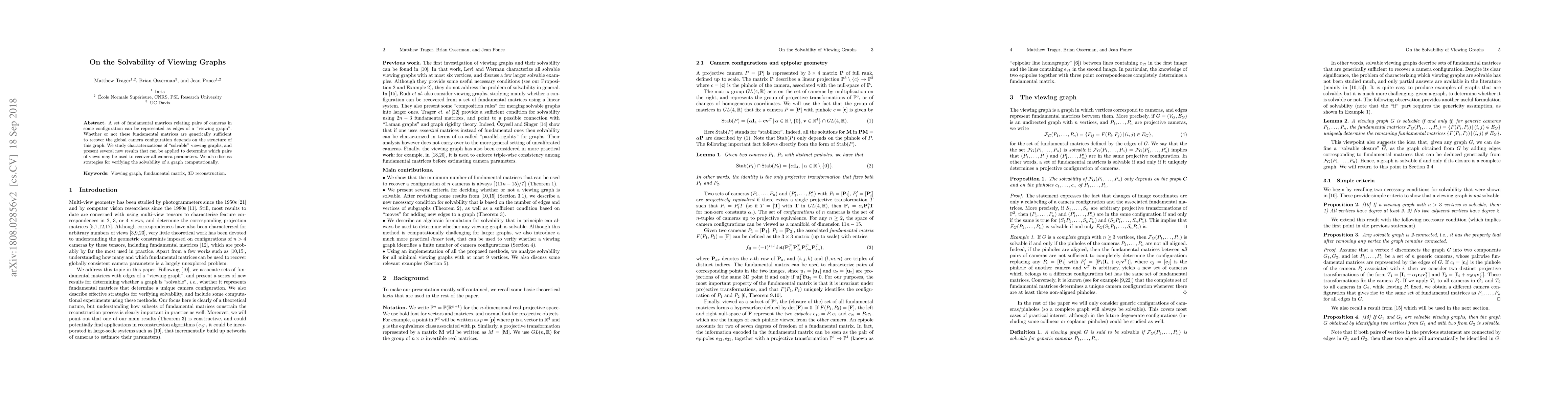 This paper investigates whether certain camera configurations can be recovered using fundamental matrices, focusing on characterizing 'solvable' viewing graphs and providing computational strategies for verification.