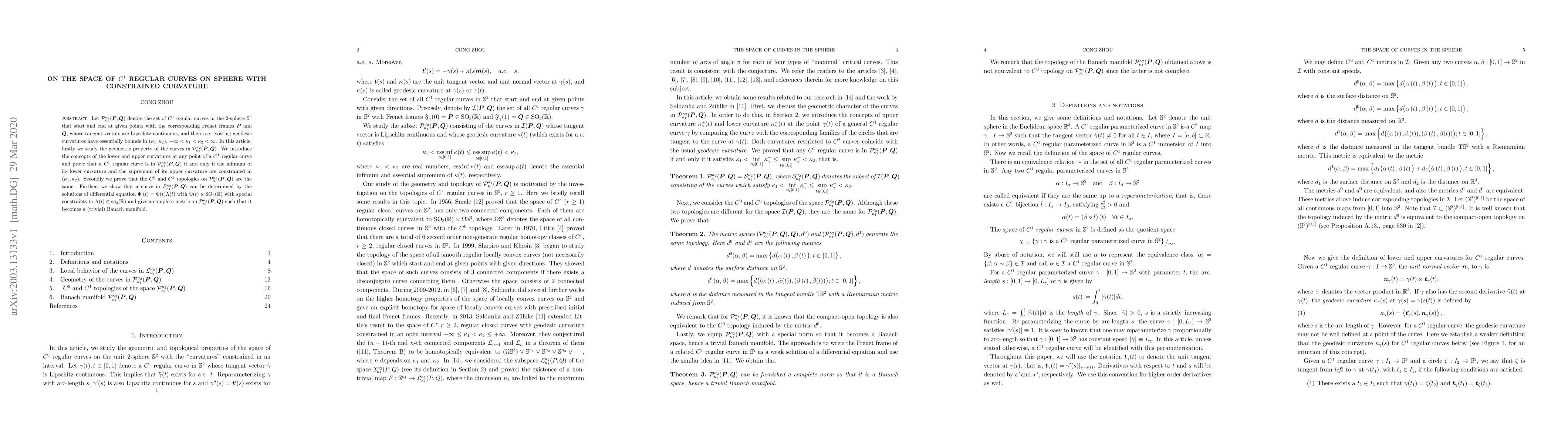 Let $\mathcal{P}_{\kappa_1}^{\kappa_2}(\boldsymbol{P}, \boldsymbol{Q})$ denote the set of $C^1$ regular curves in the $2$-sphere $\mathbb{S}^2$ that start and end at given points with the corresponding Frenet frames $\boldsymbol{P}$ and $\boldsymbol{Q}$, whose tangent vectors are Lipschitz continuous, and their a.e. existing geodesic curvatures have essentially bounds in $(\kappa_1, \kappa_2)$, $-\infty<\kappa_1<\kappa_2<\infty$. In this article, firstly we study the geometric property of the curves in $\mathcal{P}_{\kappa_1}^{\kappa_2}(\boldsymbol{P}, \boldsymbol{Q})$. We introduce the concepts of the lower and upper curvatures at any point of a $C^1$ regular curve and prove that a $C^1$ regular curve is in $\mathcal{P}_{\kappa_1}^{\kappa_2}(\boldsymbol{P}, \boldsymbol{Q})$ if and only if the infimum of its lower curvature and the supremum of its upper curvature are constrained in $(\kappa_1,\kappa_2)$. Secondly we prove that the $C^0$ and $C^1$ topologies on $\mathcal{P}_{\kappa_1}^{\kappa_2}(\boldsymbol{P}, \boldsymbol{Q})$ are the same. Further, we show that a curve in $\mathcal{P}_{\kappa_1}^{\kappa_2}(\boldsymbol{P}, \boldsymbol{Q})$ can be determined by the solutions of differential equation $\Phi'(t) = \Phi(t)\Lambda(t)$ with $\Phi(t)\in \textrm{SO}_3(\mathbb{R})$ with special constraints to $\Lambda(t)\in\mathfrak{so}_3(\mathbb{R})$ and give a complete metric on $\mathcal{P}_{\kappa_1}^{\kappa_2}(\boldsymbol{P}, \boldsymbol{Q})$ such that it becomes a (trivial) Banach manifold.