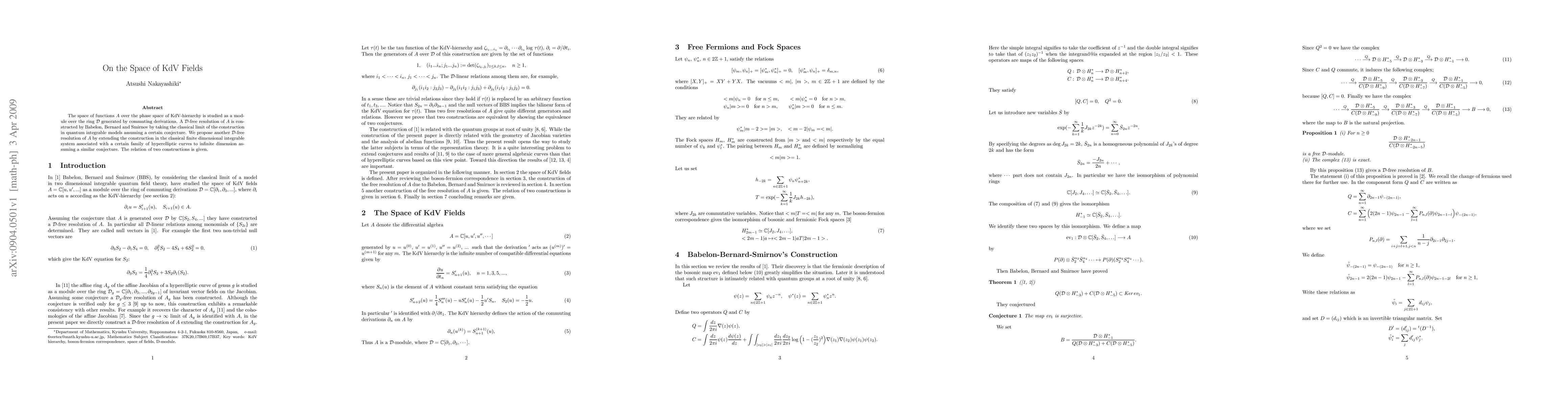 The space of functions A over the phase space of KdV-hierarchy is studied as a module over the ring D generated by commuting derivations. A D-free resolution of A is constructed by Babelon, Bernard and Smirnov by taking the classical limit of the construction in quantum integrable models assuming a certain conjecture. We propose another D-free resolution of A by extending the construction in the classical finite dimensional integrable system associated with a certain family of hyperelliptic curves to infinite dimension assuming a similar conjecture. The relation of two constructions is given.