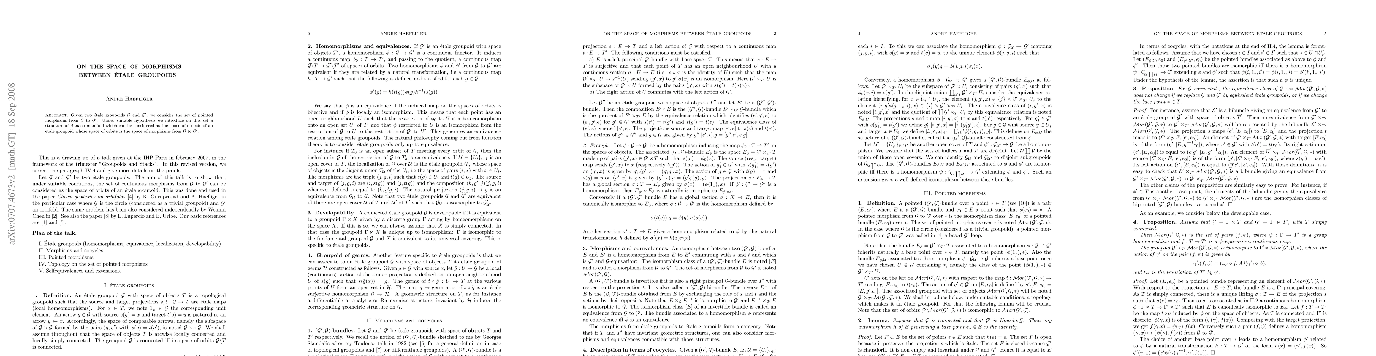 This paper explores the structure of pointed morphisms between \'etale groupoids $\Cal G$ and $\Cal G'$, establishing them as a Banach manifold, and interprets this manifold as the objects space of a new \'etale groupoid whose orbit space corresponds to morphisms from $\Cal G$ to $\Cal G'$.