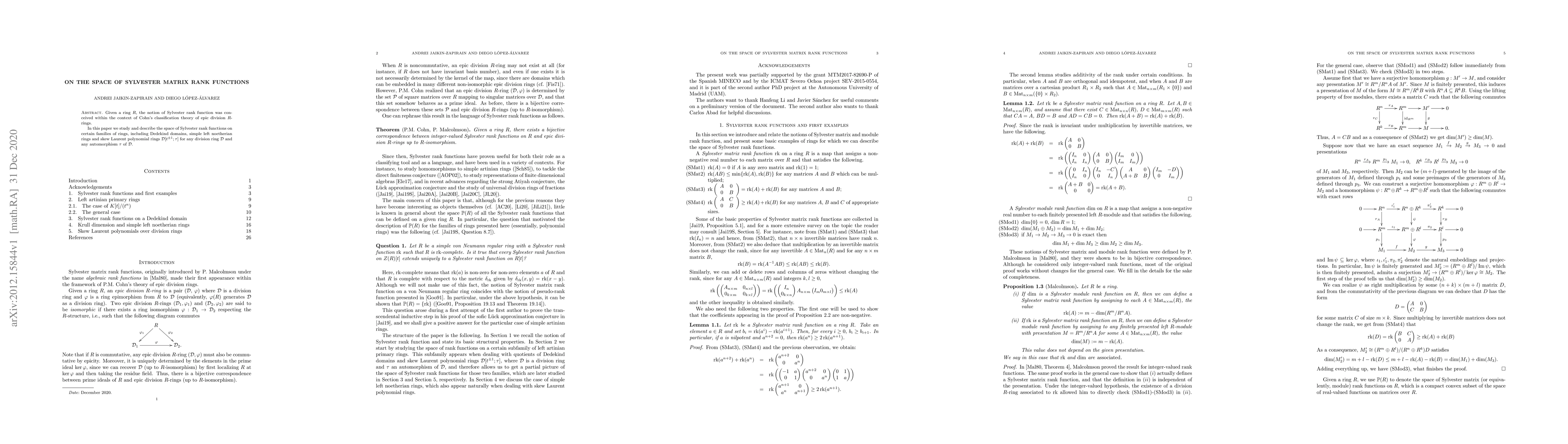 Researchers studied the space of Sylvester rank functions on specific families of rings, including Dedekind domains and skew Laurent polynomial rings, making key findings about their properties and implications for Cohn's classification theory.