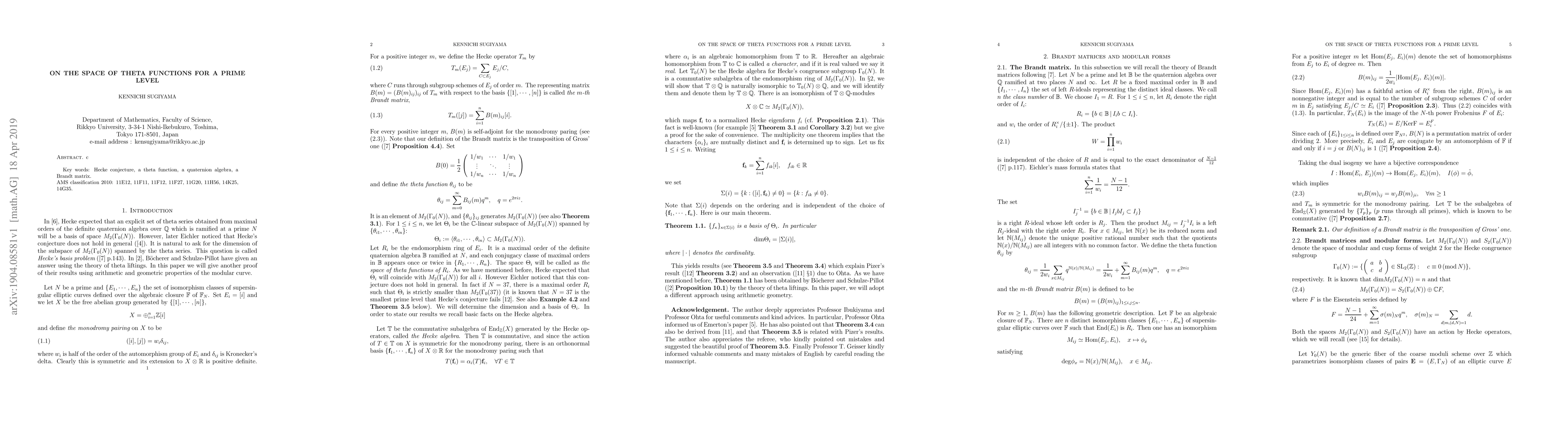 Hecke expected that an explicit set of theta series obtained from maximal orders of the definite quaternion algebra over Q which is ramified at a prime N will be a basis of the space of holomorphic modular forms of weight 2 and level N. However, later Eichler noticed that Hecke's conjecture does not hold in general. It is natural to ask for the dimension of the subspace of the modular forms spanned by the theta series. This question is called Hecke's basis problem. Boecherer and Schulze-Pillot have given an answer using the theory of theta liftings. In this paper we will give another proof of their results using arithmetic and geometric properties of the modular curve.