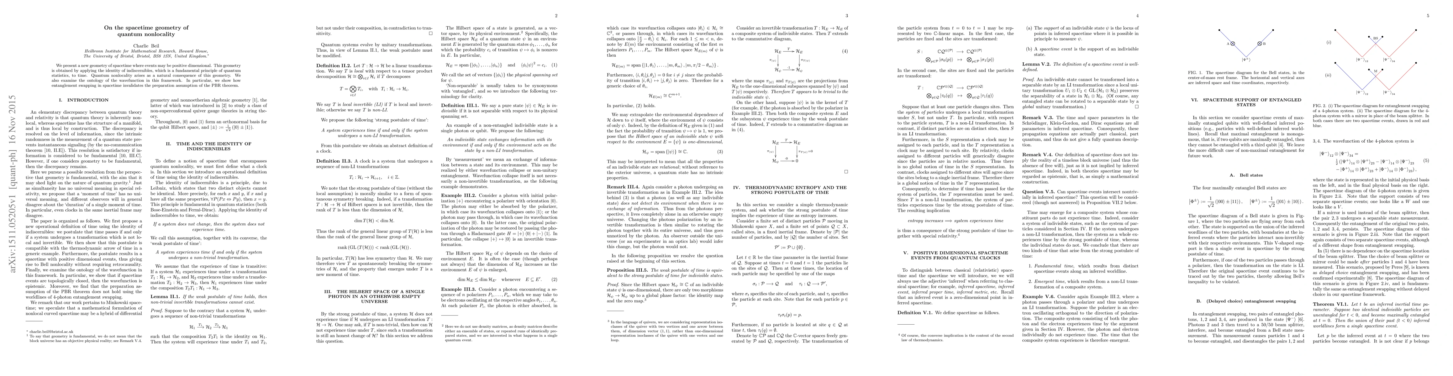 This paper introduces a novel spacetime geometry where events can have positive dimensions, derived from applying quantum statistics' identity of indiscernibles to time. It explores quantum nonlocality as a consequence and discusses how entanglement swapping challenges the PBR theorem's preparation assumption.