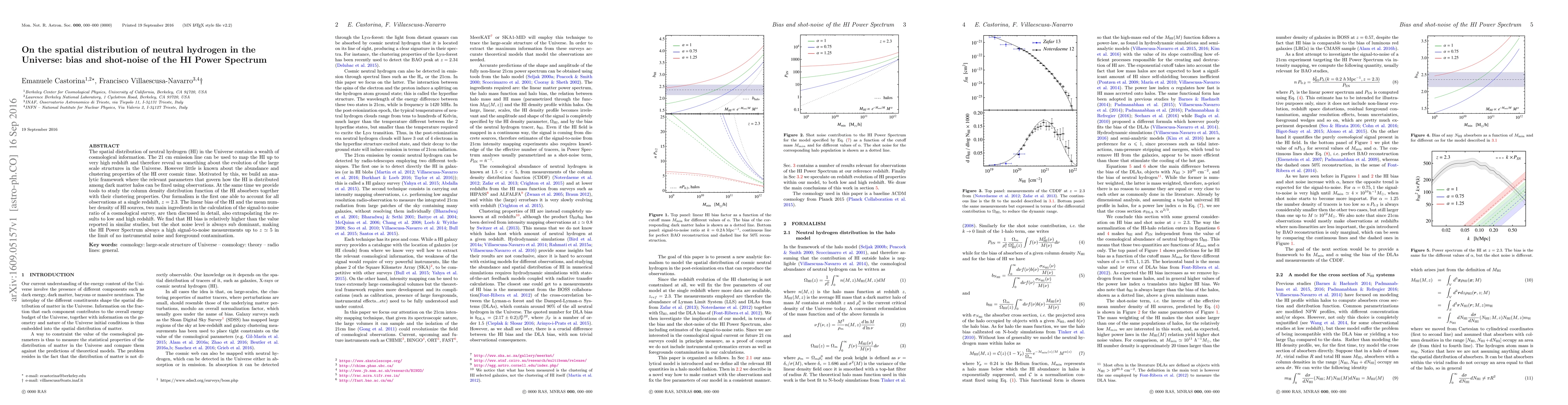 This paper develops an analytic framework to study the spatial distribution and clustering of neutral hydrogen (HI) in the Universe, focusing on its bias and shot noise in the HI Power Spectrum. It finds that HI bias is higher than previously reported but concludes that shot noise remains subdominant, ensuring a high signal-to-noise ratio for HI Power Spectrum measurements up to redshifts of about 5.