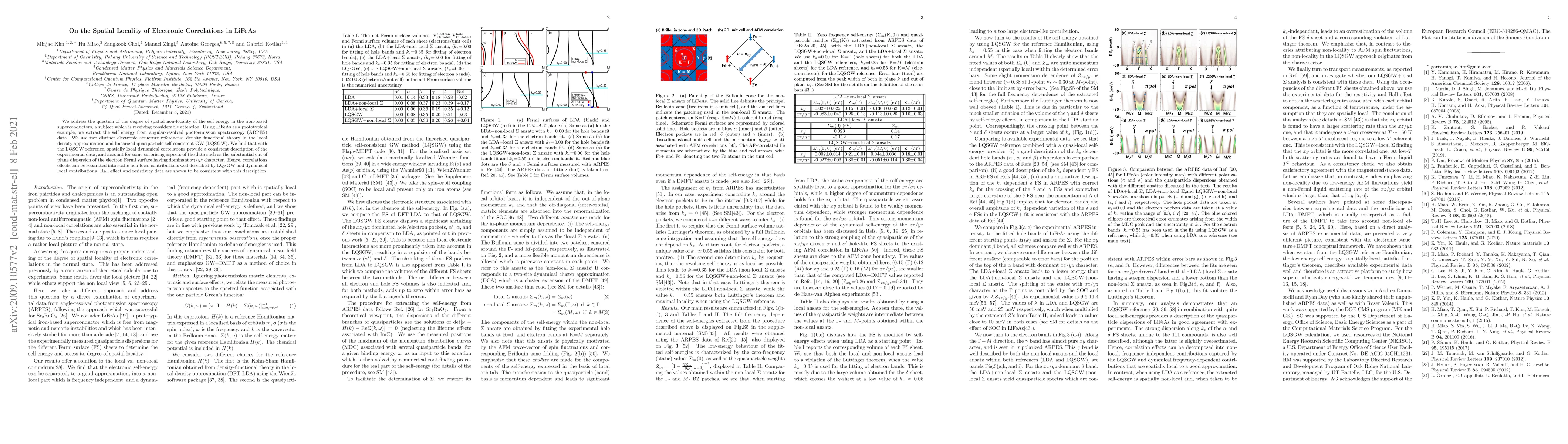 We address the question of the degree of spatial non-locality of the self energy in the iron-based superconductors, a subject which is receiving considerable attention. Using LiFeAs as a prototypical example, we extract the self energy from angular-resolved photoemission spectroscopy (ARPES) data. We use two distinct electronic structure references: density functional theory in the local density approximation and linearized quasiparticle self consistent GW (LQSGW). We find that with the LQSGW reference, spatially local dynamical correlations provide a consistent description of the experimental data, and account for some surprising aspects of the data such as the substantial out of plan dispersion of the electron Fermi surface having dominant xz/yz character. Hence, correlations effects can be separated into static non-local contributions well described by LQSGW and dynamical local contributions. Hall effect and resistivity data are shown to be consistent with this description.
