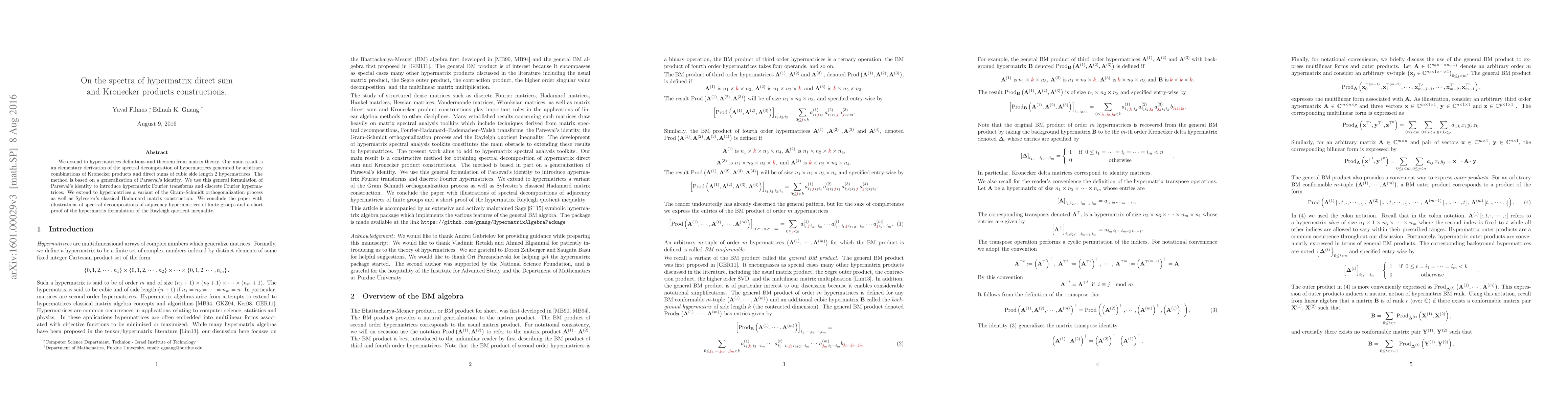 Our main result is an elementary derivation of the spectral decomposition of hypermatrices generated by arbitrary combinations of Kronecker products and direct sums of cubic side length 2