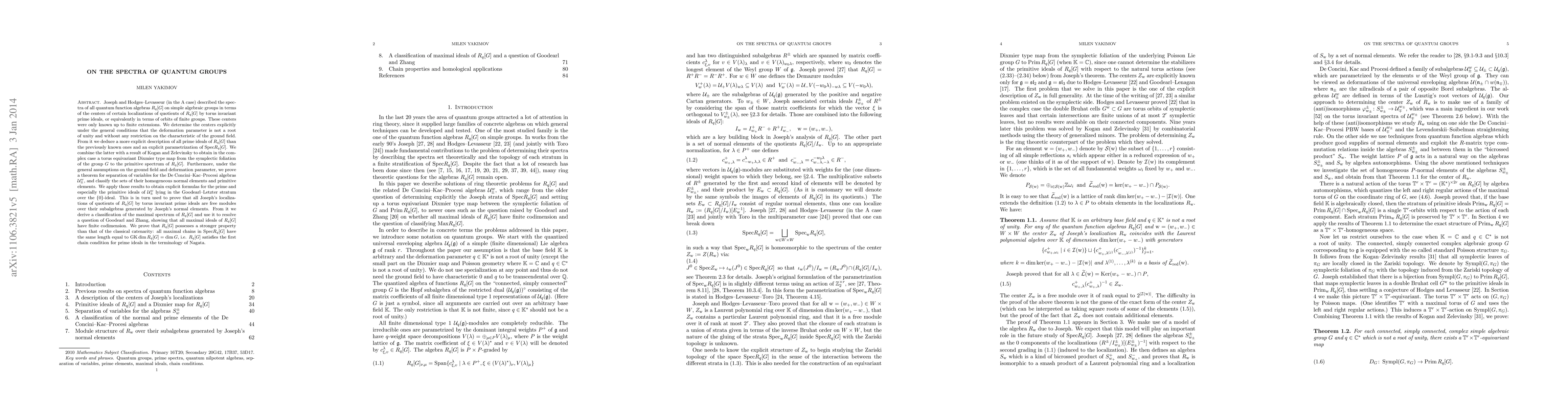 Joseph and Hodges-Levasseur (in the A case) described the spectra of all quantum function algebras R_q[G] on simple algebraic groups in terms of the centers of certain localizations of quotients of R_q[G] by torus invariant prime ideals, or equivalently in terms of orbits of finite groups. These centers were only known up to finite extensions. We determine the centers explicitly under the general conditions that the deformation parameter is not a root of unity and without any restriction on the characteristic of the ground field. From it we deduce a more explicit description of all prime ideals of R_q[G] than the previously known ones and an explicit parametrization of Spec R_q[G]. We combine the latter with a result of Kogan and Zelevinsky to obtain in the complex case a torus equivariant Dixmier type map from the symplectic foliation of the group G to the primitive spectrum of R_q[G]. Furthermore, under the general assumptions on the ground field and deformation parameter, we prove a theorem for separation of variables for the De Concini-Kac-Procesi algebras U^w_\pm, and classify the sets of their homogeneous normal elements and primitive elements. We apply those results to obtain explicit formulas for the prime and especially the primitive ideals of U^w_\pm lying in the Goodearl-Letzter stratum over the 0-ideal. This is in turn used to prove that all Joseph's localizations of quotients of R_q[G] by torus invariant prime ideals are free modules over their subalgebras generated by Joseph's normal elements. From it we derive a classification of the maximal spectrum of R_q[G] and use it to resolve a question of Goodearl and Zhang, showing that all maximal ideals of R_q[G] have finite codimension. We then prove that all maximal chains in Spec R_q[G] have the same length equal to GKdim R_q[G]= dim G, i.e. R_q[G] satisfies the first chain condition for prime ideals in Nagata's terminology.