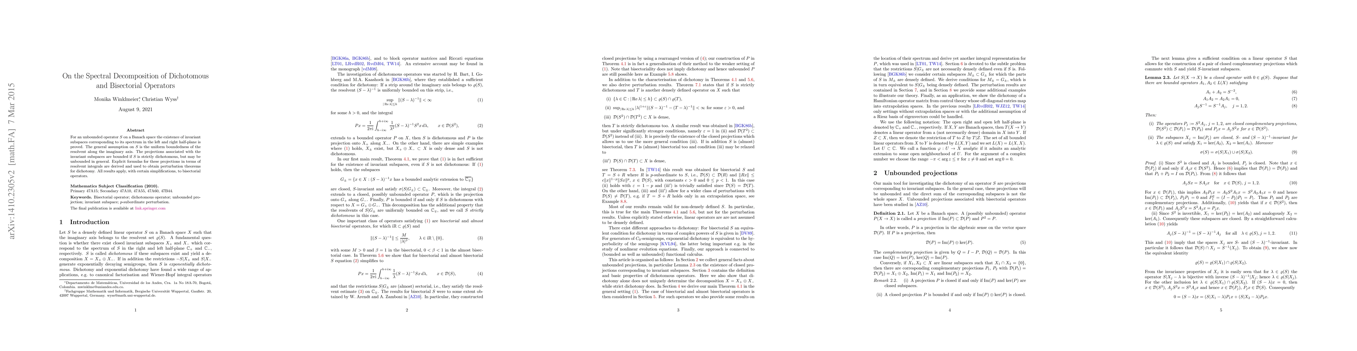 Researchers prove that unbounded operators on Banach spaces have invariant subspaces corresponding to their spectrum in the left and right half-plane. They also derive explicit formulas for these projections using resolvent integrals.