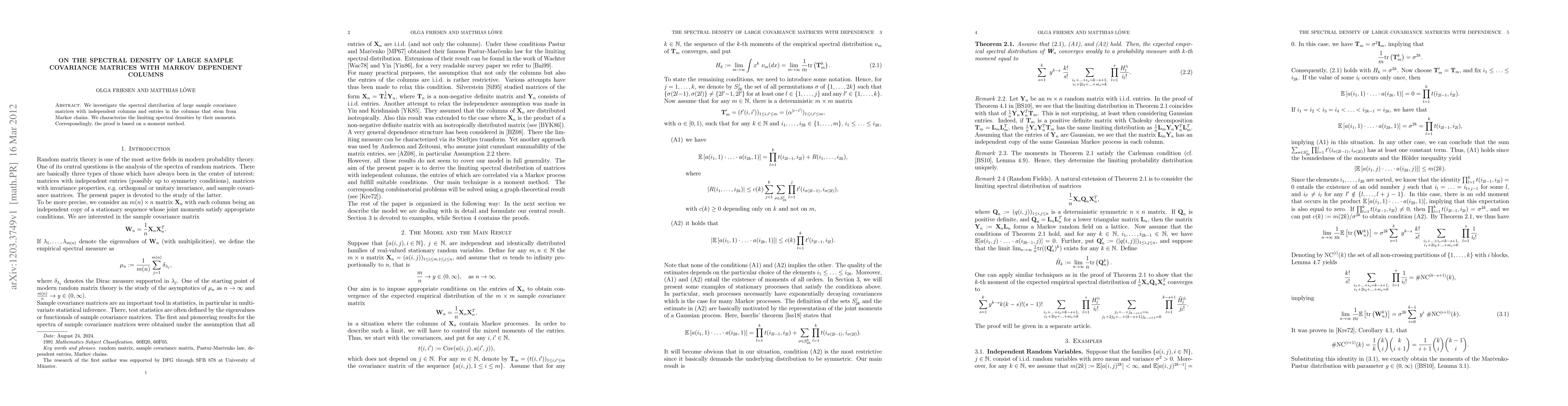 The paper introduces a moment-based approach to analyze the spectral density of large covariance matrices under Markov dependence conditions.