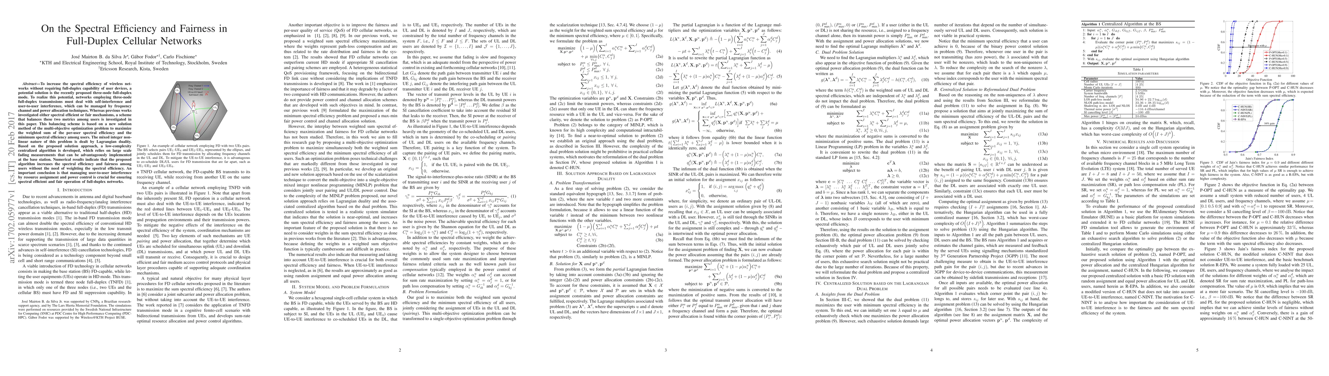 This paper proposes a new optimization scheme to enhance both spectral efficiency and fairness in full-duplex cellular networks using three-node full-duplex mode, addressing self-interference and user-to-user interference through frequency and power allocation. The developed algorithm balances these metrics effectively without requiring explicit weighting, highlighting the importance of interference management for optimal network performance.
