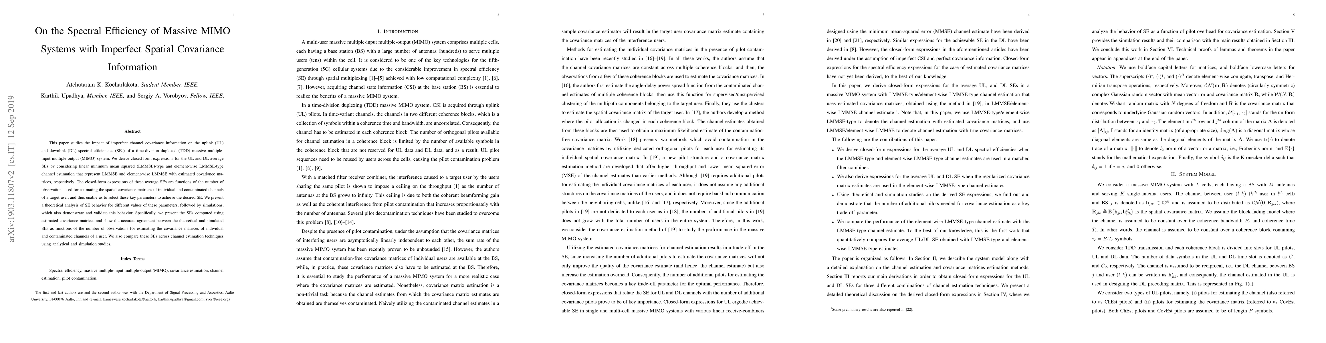 This paper investigates the spectral efficiency of massive MIMO systems under imperfect spatial covariance information, deriving closed-form expressions for uplink and downlink SEs using different channel estimation techniques. The study shows accurate agreement between theoretical and simulated SEs, highlighting the impact of covariance matrix estimation on performance.