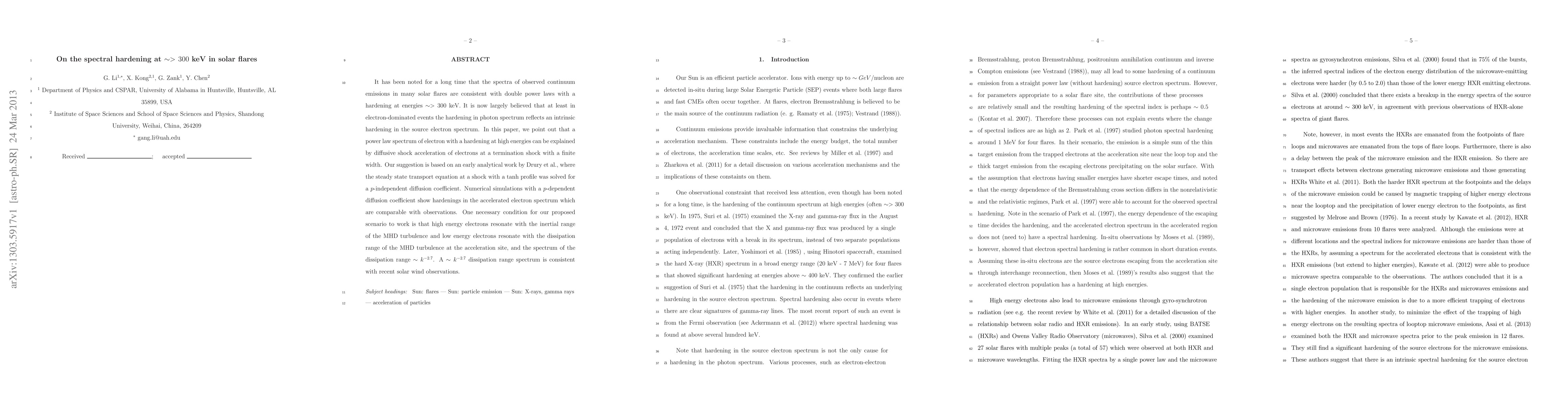 This research proposes that the spectral hardening observed at ~>300 keV in solar flares can be explained by diffusive shock acceleration of electrons at a termination shock with a finite width. The suggestion is supported by numerical simulations using a power-dependent diffusion coefficient, showing hardening in the electron spectrum similar to observations. A key condition is that high-energy electrons resonate with the inertial range of MHD turbulence, and low-energy electrons with the dissipation range, which has a $sim k^{-2.7}$ spectrum consistent with recent solar wind observations.