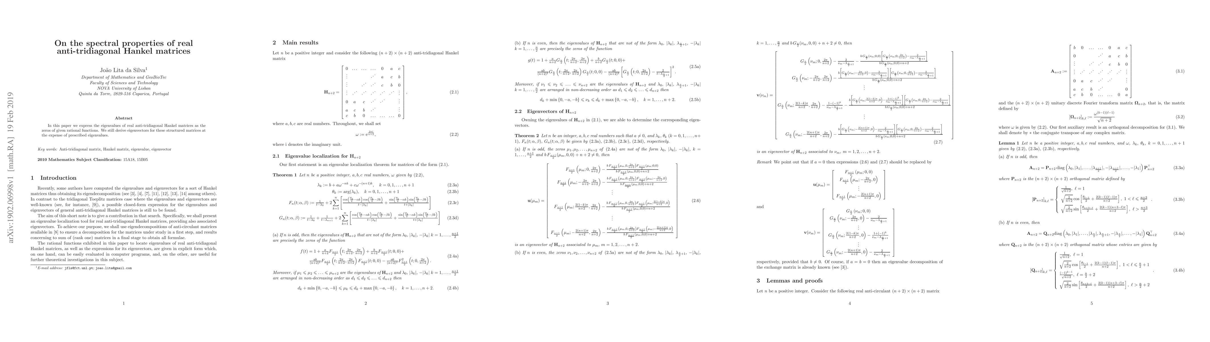 This paper determines the eigenvalues of real anti-tridiagonal Hankel matrices by identifying them as the zeros of specific rational functions. It also provides a method to derive corresponding eigenvectors for these matrices.