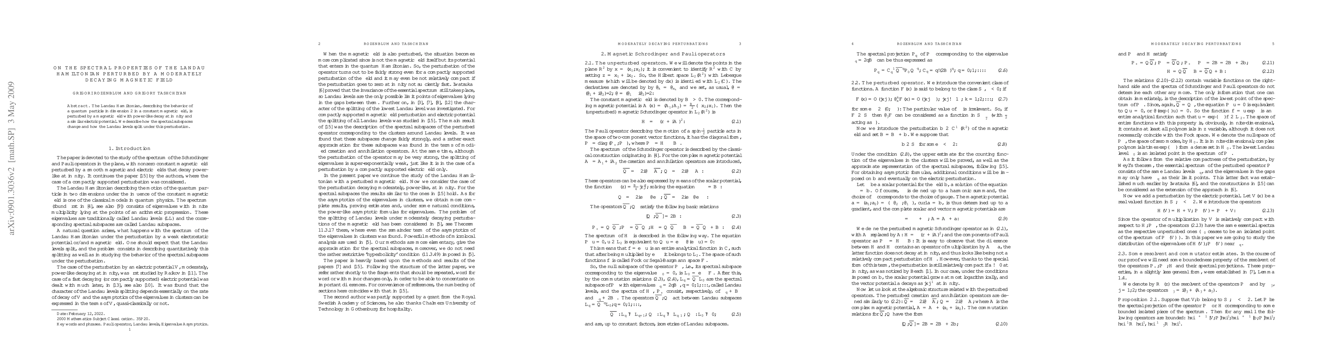 The Landau Hamiltonian, describing the behavior of a quantum particle in dimension 2 in a constant magnetic field, is perturbed by a magnetic field with power-like decay at infinity and a similar electric potential. We describe how the spectral subspaces change and how the Landau levels split under this perturbation.