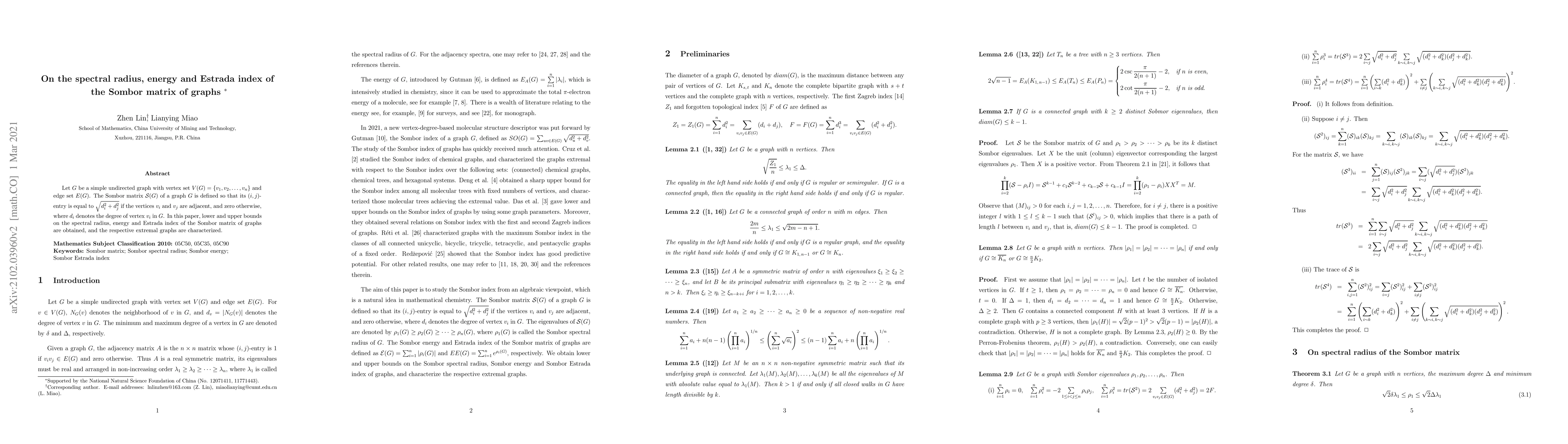 Let $G$ be a simple undirected graph with vertex set $V(G)=\{v_1, v_2, \ldots, v_n\}$ and edge set $E(G)$. The Sombor matrix $\mathcal{S}(G)$ of a graph $G$ is defined so that its $(i,j)$-entry is equal to $\sqrt{d_i^2+d_j^2}$ if the vertices $v_i$ and $v_j$ are adjacent, and zero otherwise, where $d_i$ denotes the degree of vertex $v_i$ in $G$. In this paper, lower and upper bounds on the spectral radius, energy and Estrada index of the Sombor matrix of graphs are obtained, and the respective extremal graphs are characterized.