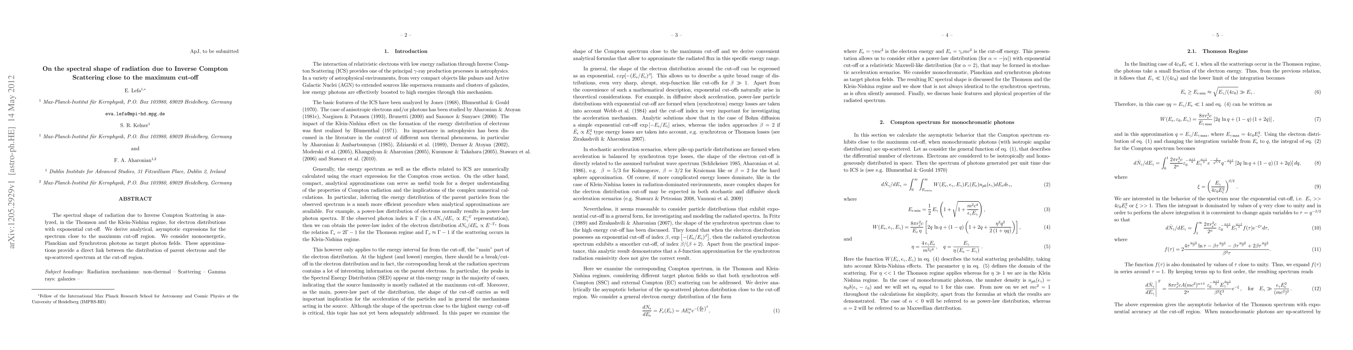 This paper analyzes the spectral shape of radiation from Inverse Compton Scattering in both Thomson and Klein-Nishina regimes, focusing on electron distributions with exponential cut-offs. Analytical expressions are derived for the spectrum near the maximum cut-off, considering various target photon fields, which link the parent electron distribution to the up-scattered spectrum.
