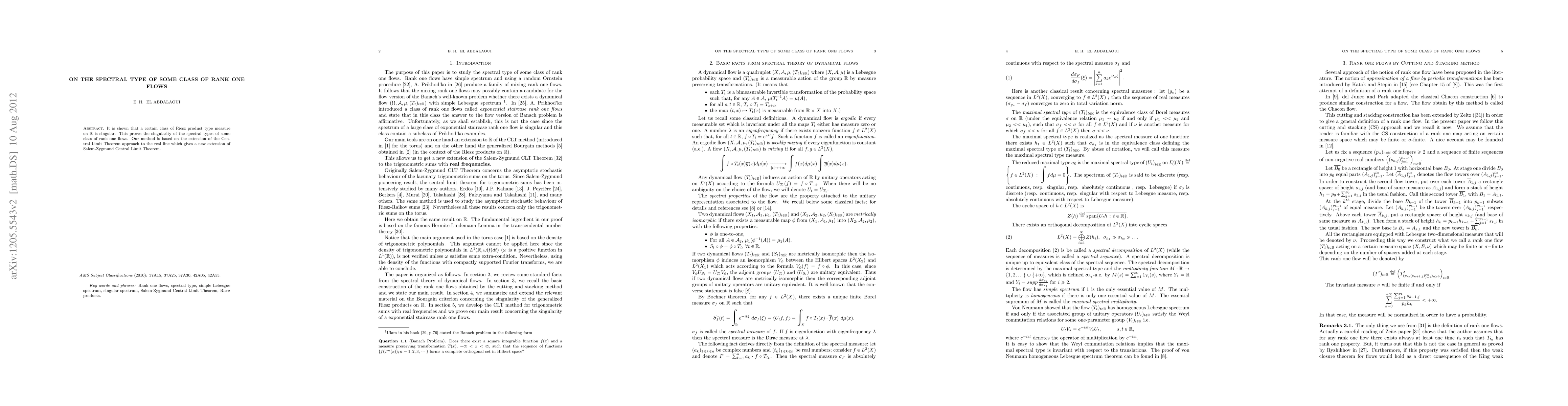 Researchers prove that a specific type of measure on the real line is singular, leading to the singularity of the spectral types of certain rank one flows. This breakthrough extends the Central Limit Theorem approach.