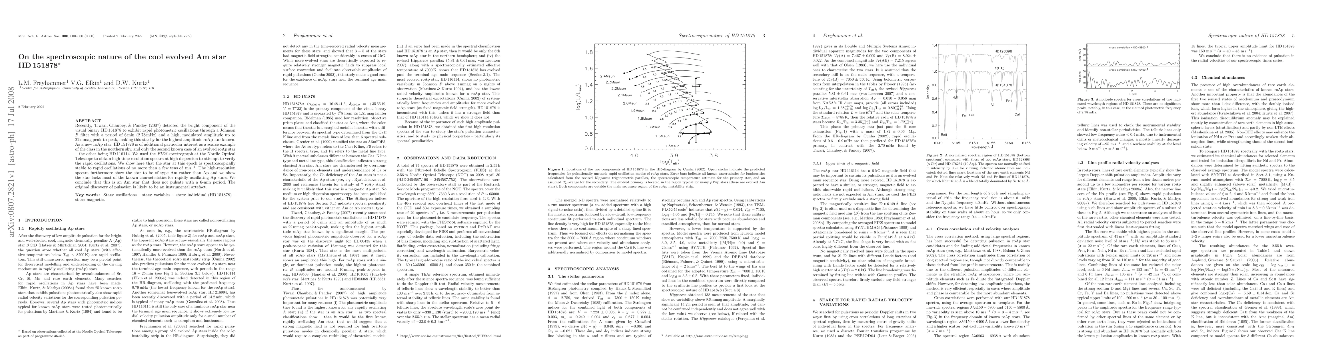 Recently, Tiwari, Chaubey, & Pandey (2007) detected the bright component of the visual binary HD151878 to exhibit rapid photometric oscillations through a Johnson B filter with a period of 6 min (2.78 mHz) and a high, modulated amplitude up to 22 mmag peak-to-peak, making this star by far the highest amplitude roAp star known. As a new roAp star, HD151878 is of additional particular interest as a scarce example of the class in the northern sky, and only the second known case of an evolved roAp star - the other being HD 116114. We used the FIES spectrograph at the Nordic Optical Telescope to obtain high time resolution spectra at high dispersion to attempt to verify the rapid oscillations. We show here that the star at this epoch is spectroscopically stable to rapid oscillations of no more than a few tens of m/s. The high-resolution spectra furthermore show the star to be of type Am rather than Ap and we show the star lacks most of the known characteristics for rapidly oscillating Ap stars. We conclude that this is an Am star that does not pulsate with a 6-min period. The original discovery of pulsation is likely to be an instrumental artefact.