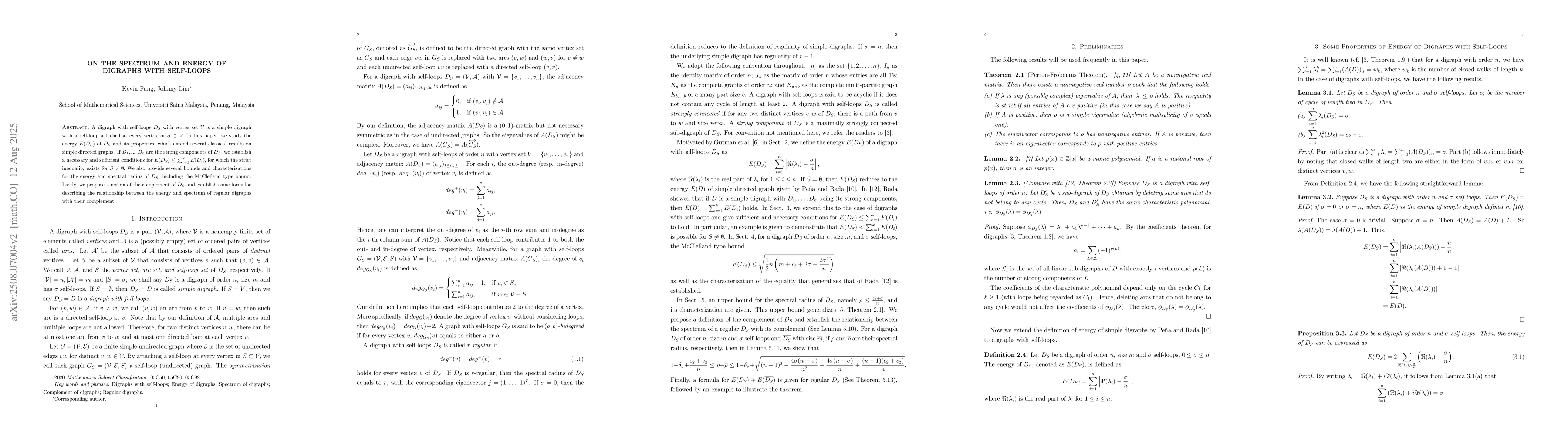 A digraph with self-loops $D_S$ with vertex set $\mathcal{V}$ is a simple digraph with a self-loop attached at every vertex in $S \subset \mathcal{V}.$ In this paper, we study the energy $E(D_S)$ of $D_S$ and its properties, which extend several classical results on simple directed graphs. If $D_1,...,D_k$ are the strong components of $D_S,$ we establish a necessary and sufficient conditions for $E(D_S) \leq \sum^k_{i=1} E(D_i),$ for which the strict inequality exists for $S\neq \emptyset.$ We also provide several bounds and characterizations for the energy and spectral radius of $D_S,$ including the McClelland type bound. Lastly, we propose a notion of the complement of $D_S$ and establish some formulae describing the relationship between the energy and spectrum of regular digraphs with their complement.
