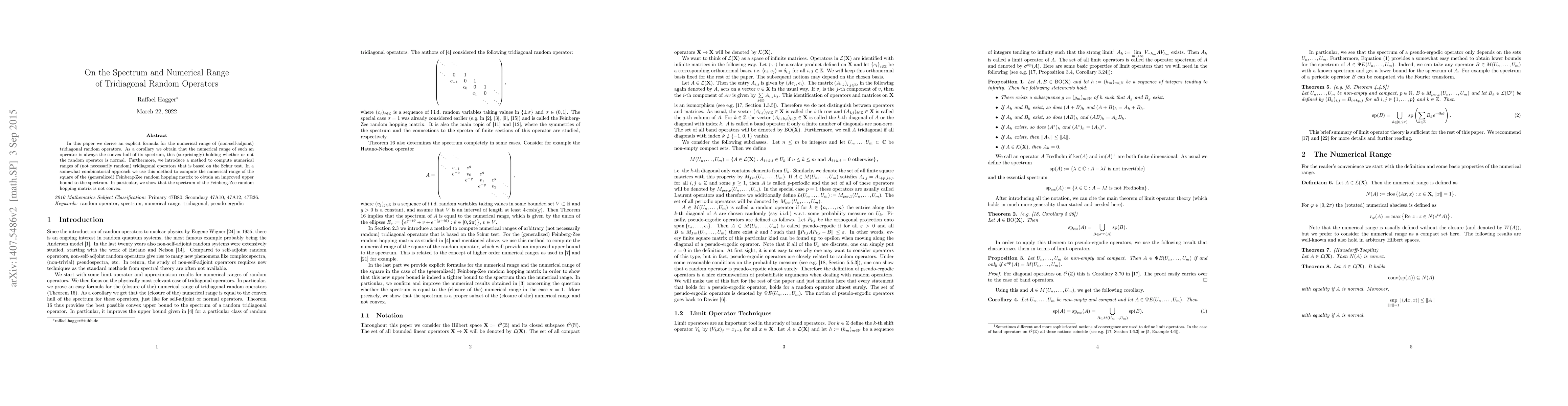 This paper provides an explicit formula for the numerical range of non-self-adjoint tridiagonal random operators, proving that their numerical range is always the convex hull of their spectrum regardless of normality. It also introduces a Schur test-based method for computing numerical ranges of tridiagonal operators and applies it to derive an improved upper bound for the spectrum of the Feinberg-Zee random hopping matrix, showing that its spectrum is not convex.