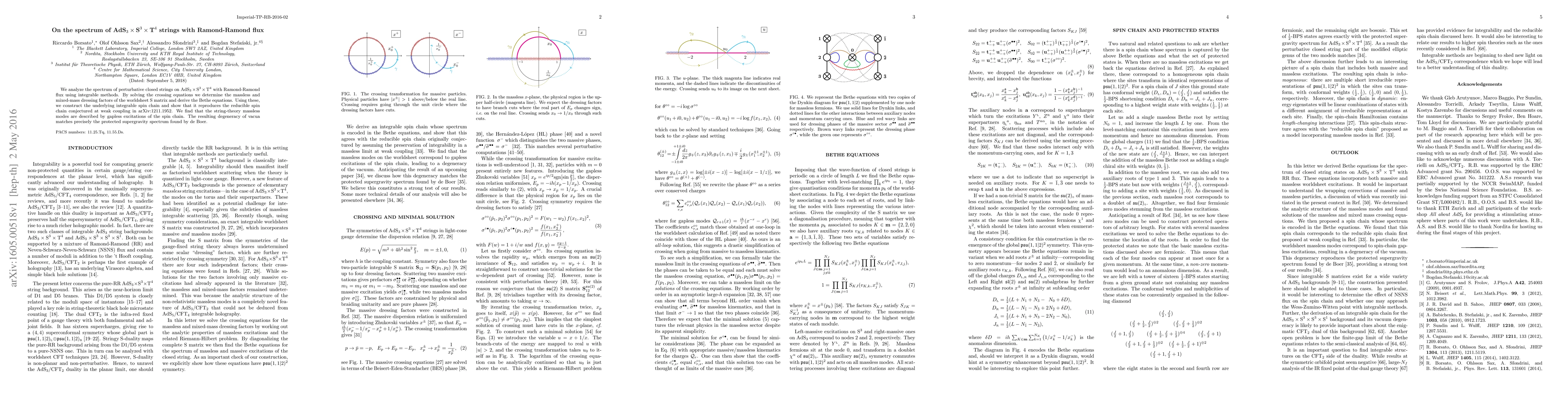This paper uses integrable methods to analyze the spectrum of closed strings in AdS3 x S3 x T4 with Ramond-Ramond flux, deriving the Bethe equations and showing they reproduce a conjectured spin chain model. The massless string modes correspond to gapless excitations in this spin chain, matching the protected supergravity spectrum.