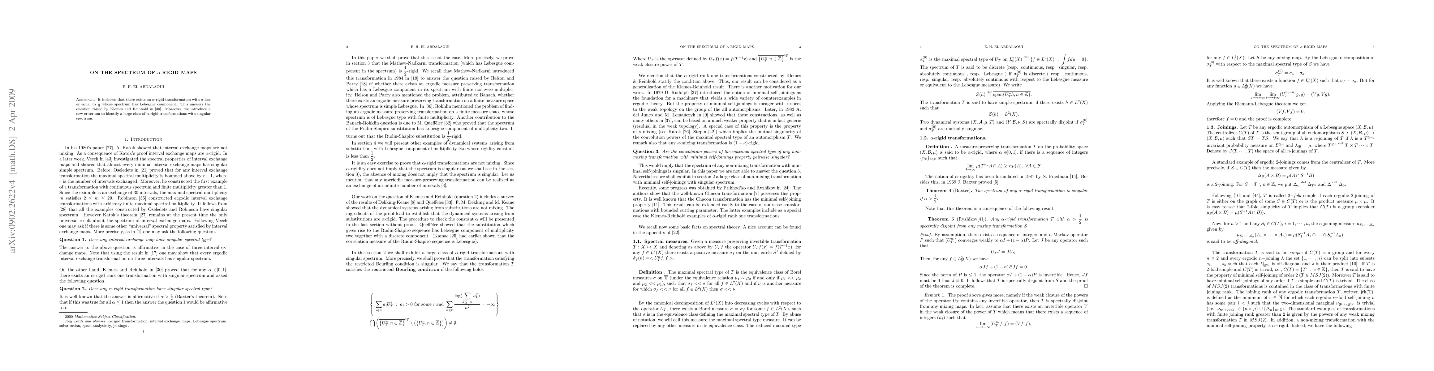 It is shown that there exists an $\alpha$-rigid transformation with $\alpha$ less or equal to $\frac12$ whose spectrum has Lebesgue component. This answers the question raised by Klemes and Reinhold in \cite{Klemes-Reinhold}. We exhibit also a large class of $\alpha$-rigid transformations with singular spectrum.