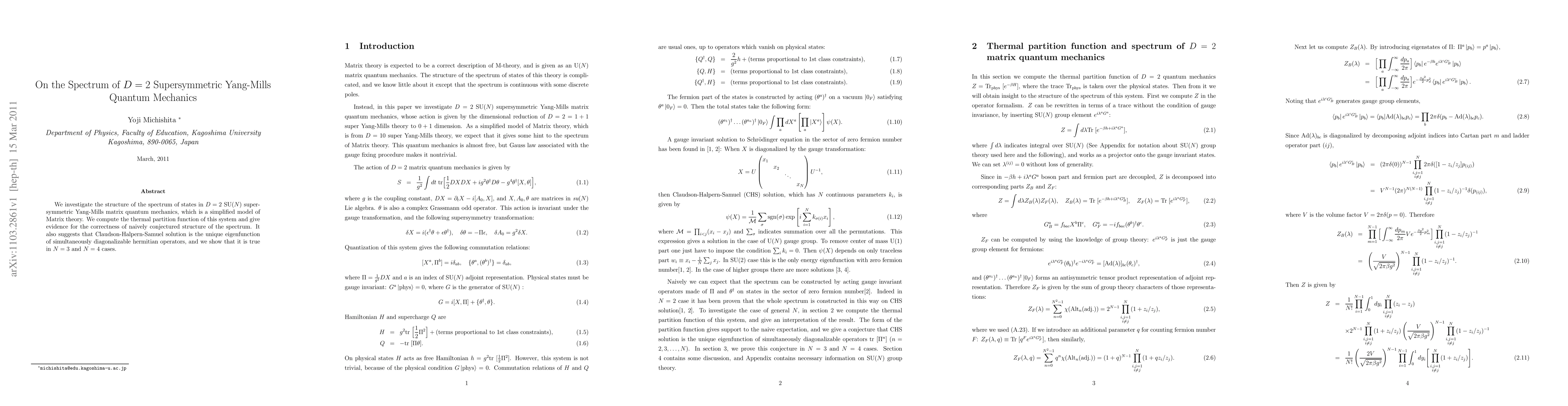 This paper explores the spectrum of states in D=2 supersymmetric Yang-Mills quantum mechanics, confirming the conjectured structure through thermal partition function calculations. It demonstrates the uniqueness of the Claudson-Halpern-Samuel solution for N=3 and N=4 cases.