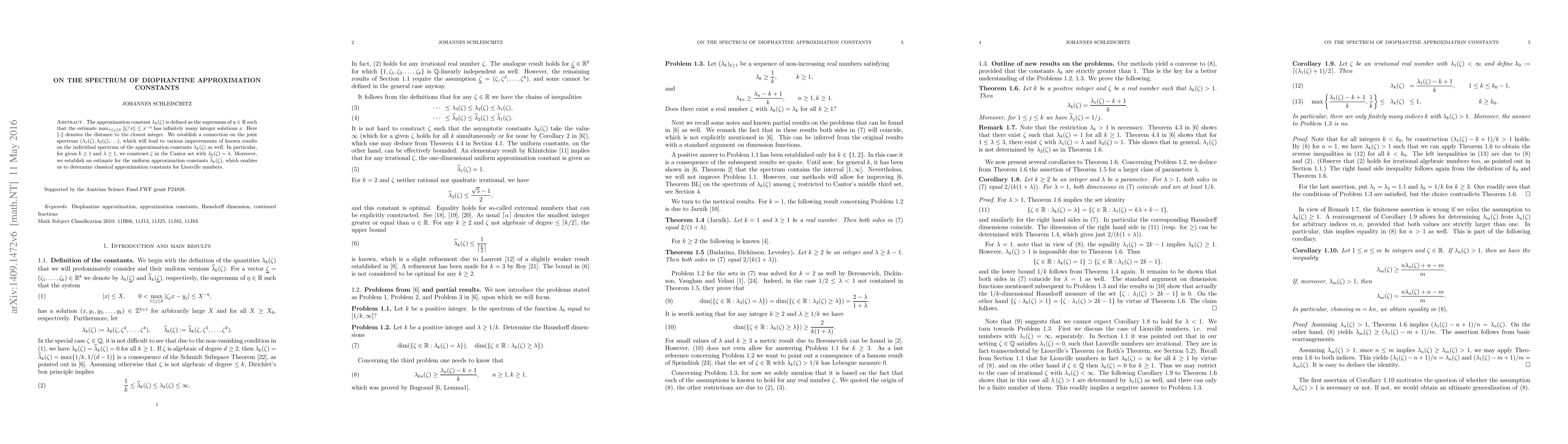 The approximation constant $\lambda_{k}(\zeta)$ is defined as the supremum of real $\eta$ such that $\Vert \zeta^{j}x\Vert\leq x^{-\eta}$ for $1\leq j\leq k$ has infinitely many integer solutions $x$. Here $\Vert.\Vert$ denotes the distance to the closest integer. We establish a connection on the joint spectrum $(\lambda_{1}(\zeta),\lambda_{2}(\zeta),\ldots)$ which will lead to various improvements of known results on the individual spectrum of the approximation constants $\lambda_{k}(\zeta)$ as well. In particular, this extends a result by Bugeaud to the case of arbitrary dimension $k$. Concretely, given $k\geq 1$ and $\lambda\geq 1$, we infer {\em explicit} constructions of $\zeta$ in the Cantor set with $\lambda_{k}(\zeta)=\lambda$.