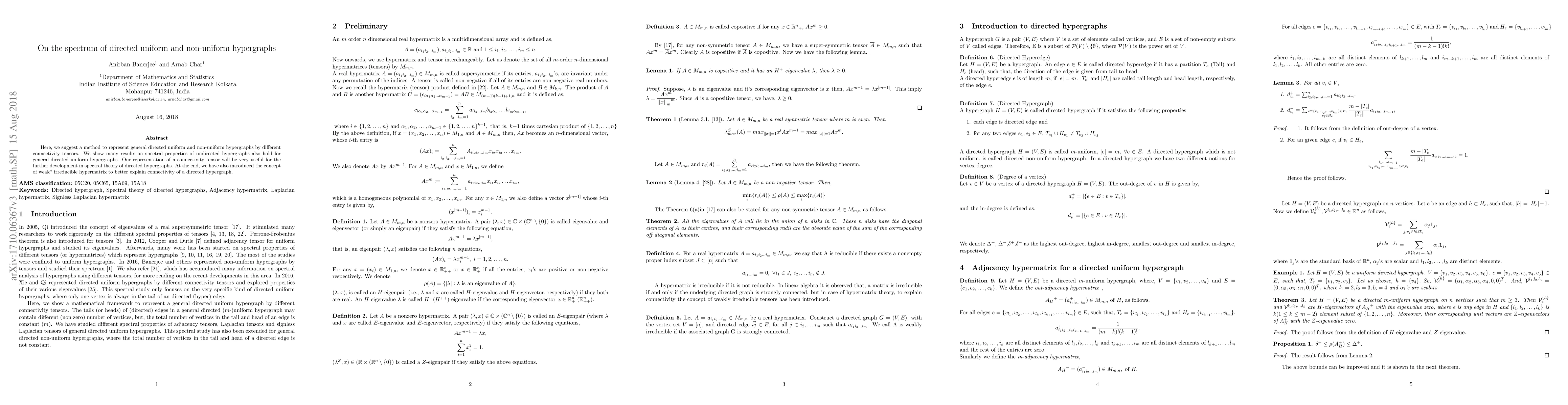 This paper proposes a novel method to represent directed uniform and non-uniform hypergraphs using connectivity tensors, demonstrating that spectral properties of undirected hypergraphs extend to directed uniform hypergraphs. The study also introduces weak* irreducible hypermatrices to elucidate directed hypergraph connectivity.